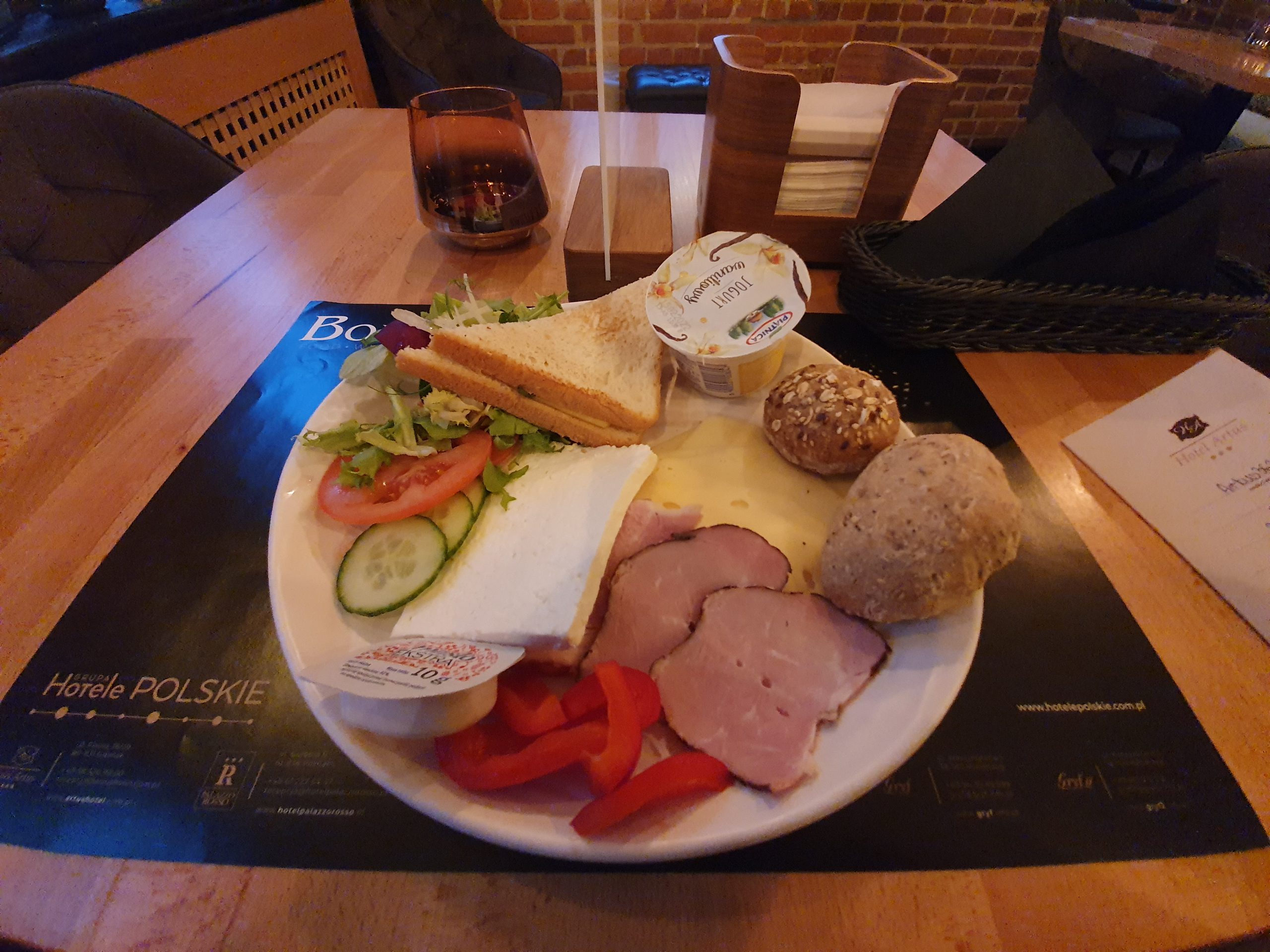I was disappointed to discover that they’ve scrapped the buffet breakfast arrangement and are just serving plated breakfasts. I’m fairly sure that this is just because they’re quiet, but I don’t like penny pinching like that as they could just put a few items out and refresh as appropriate so that guests can have what they want. The rolls, peppers and salad elements here were nice, as was the yoghurt. What I assume is pork was bland and tasteless, and the cheese tasted of cardboard. I was initially pleased to see toast, but it was some sort of odd and inedible toastie. Annoyingly, there was no orange juice, jams or gherkins, which are my staple diet at Polish hotels, along with salamis and the like. I must admit to missing the breakfasts offered by IHG and Accor hotels, and these shouldn’t really be better than smaller hotels like the Artus, especially given it has its own cafe.