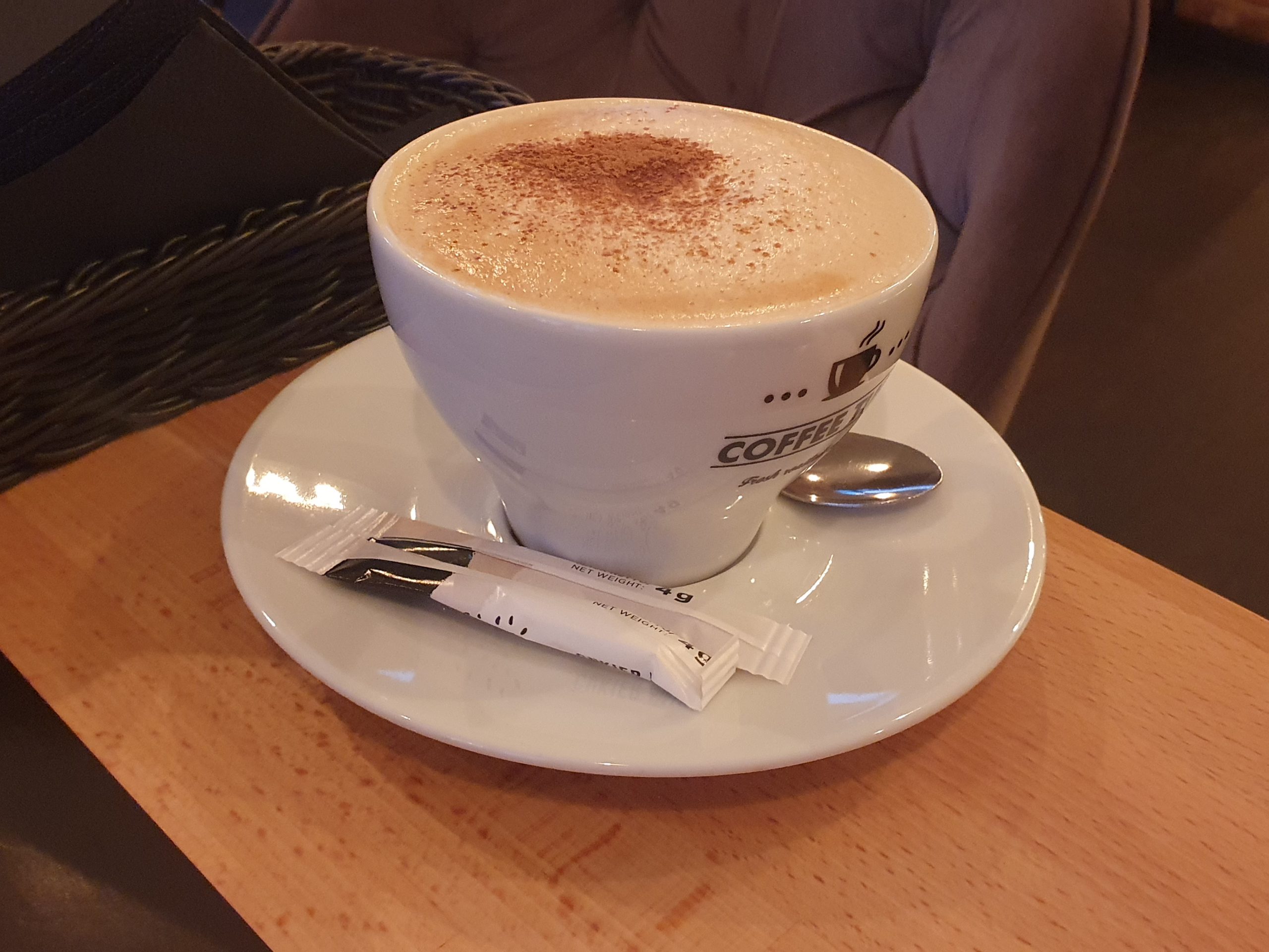 The latte was dusted with cinnamon, this was a decent coffee.