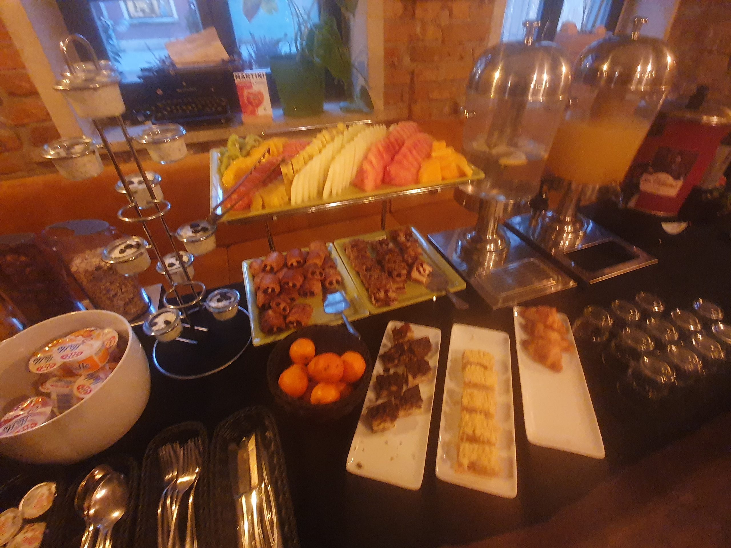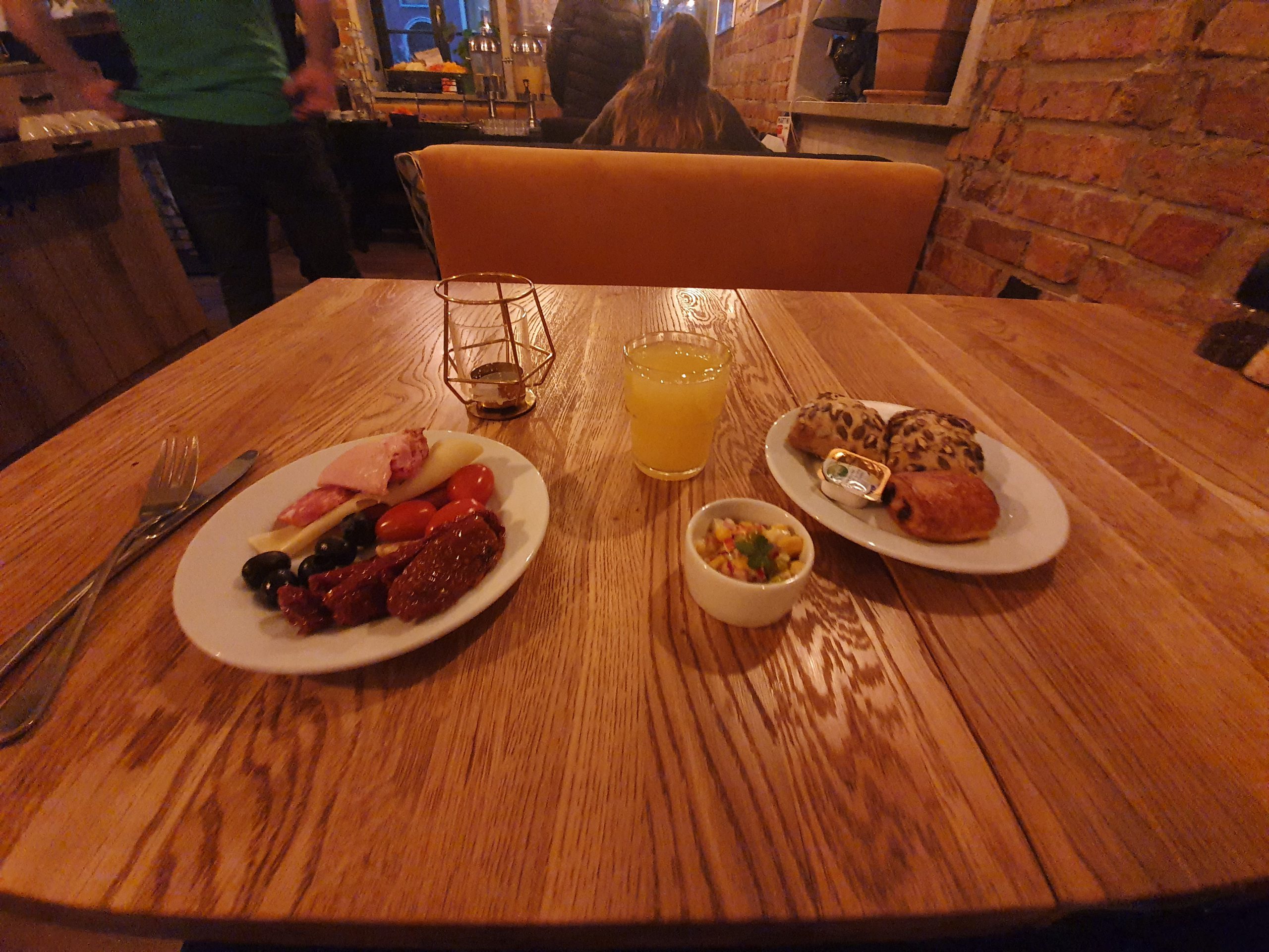 There’s a photo of the food, all nicely presented for the few guests that I think the hotel had. This is actually a restaurant in the day, Cafe & Bar Rękawiczka, which I think I visited a few years ago. There’s a back door into the hotel so that guests don’t have to walk all the way around, and they gave me a 10% voucher off food for guests as well.