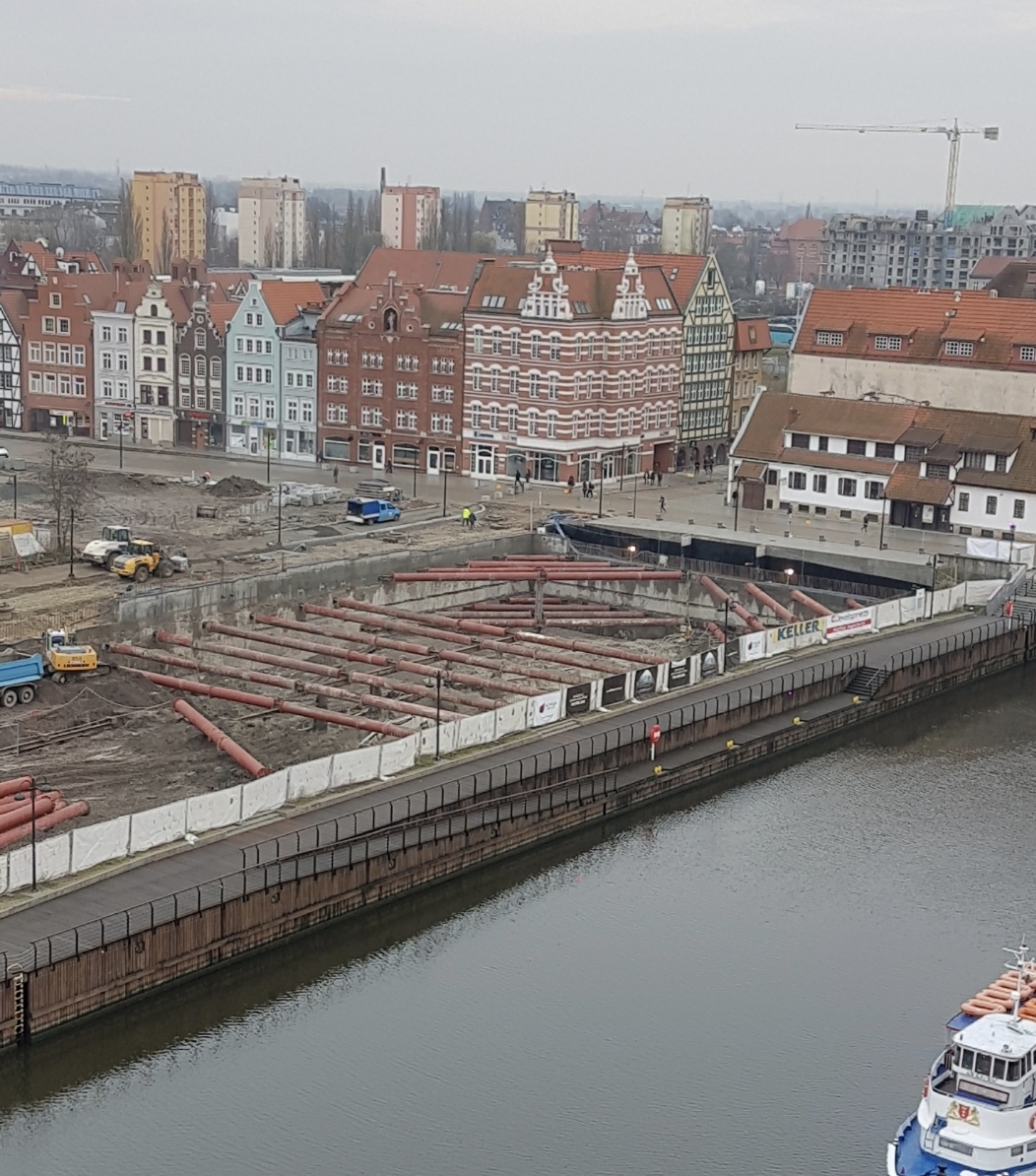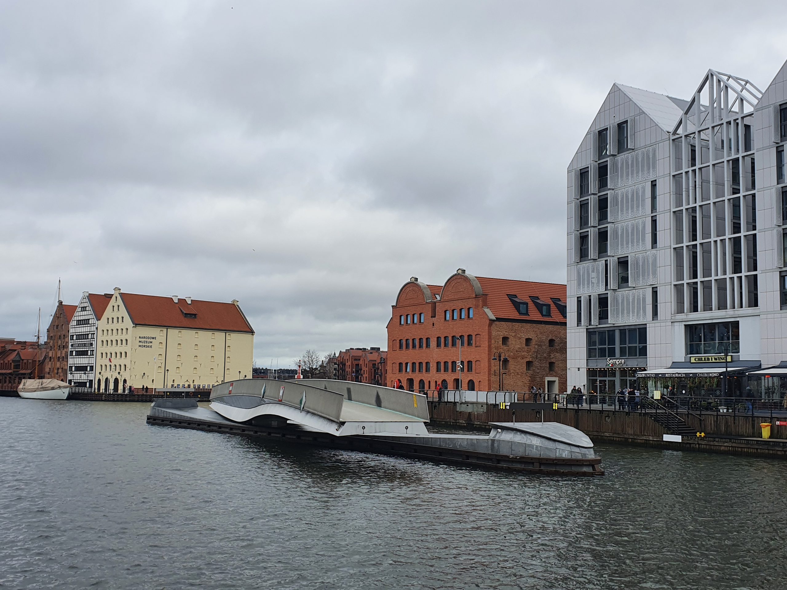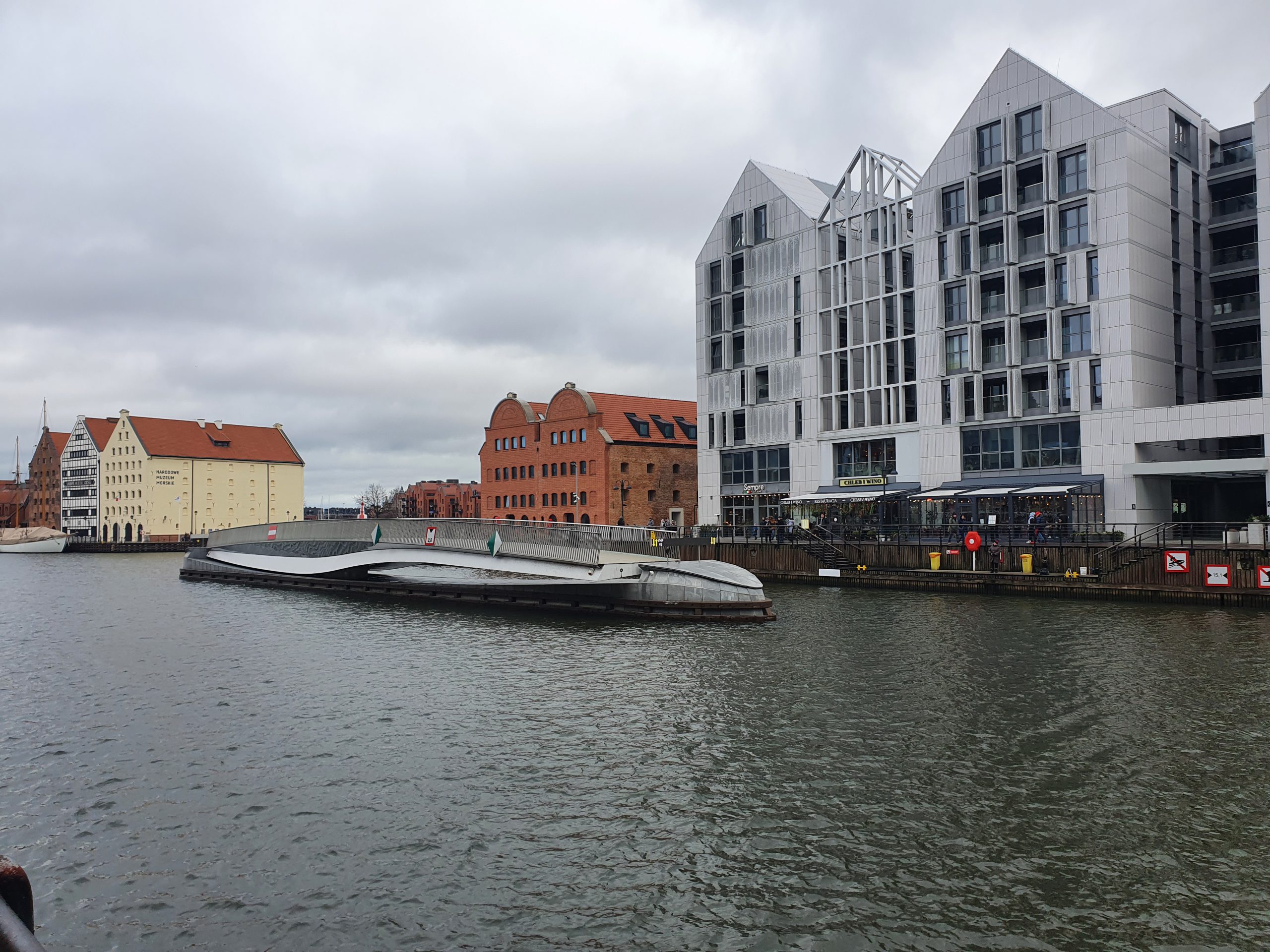 I think it’s rather nicely designed, it’s quite graceful to watch it spinning around. It was constructed by Immobel (Belgium) and Multibud (Poland) and cost around £1.5 million. This view has certainly changed since I first came to Gdansk a few years ago, with Granary Island still showing the damage from the Second World War, but now it’s a modern leisure and residential complex.