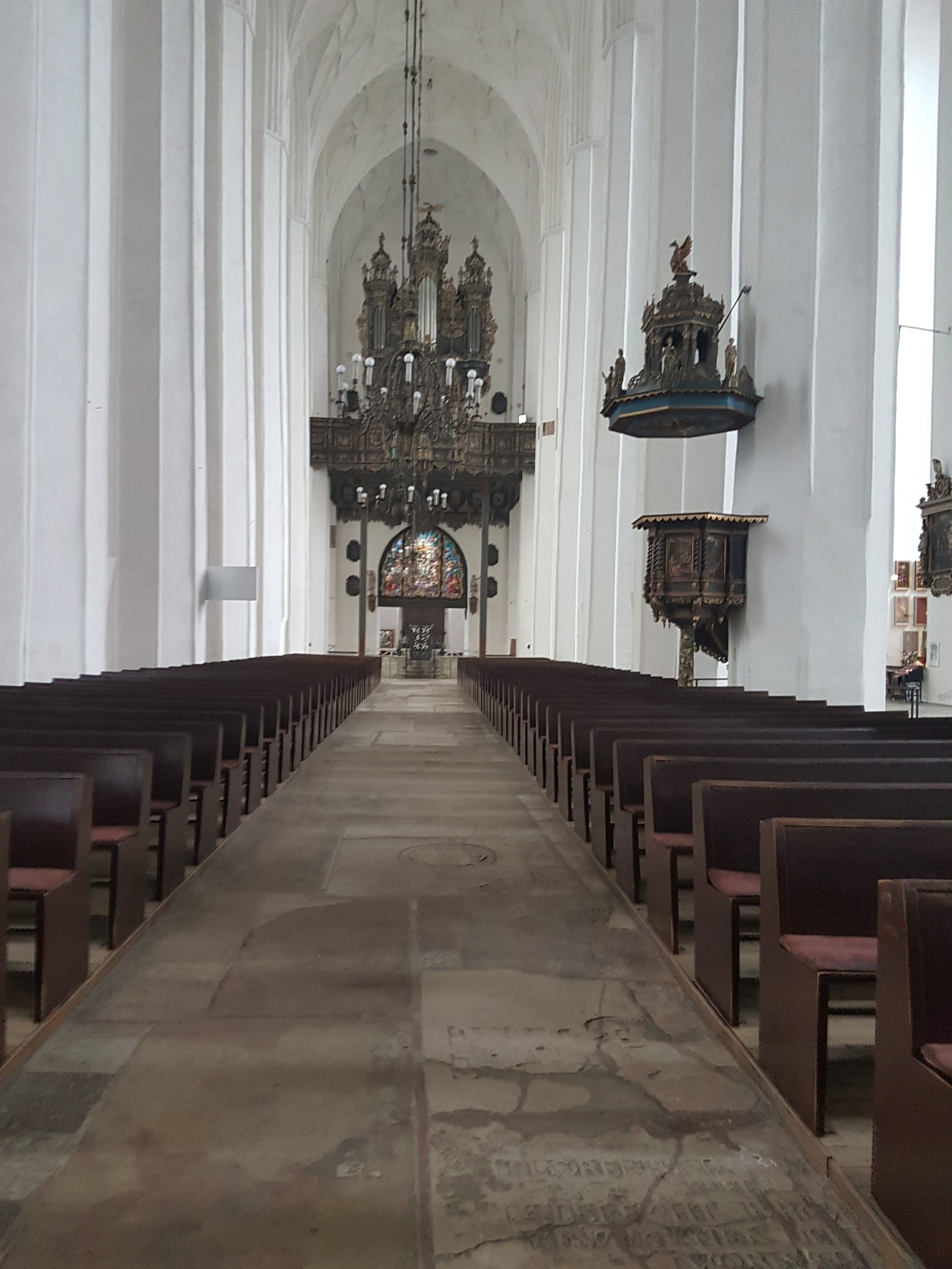 It’s a grand church and work commenced on it during the mid-fourteenth century. Constructed as a Catholic church, it was used between 1536 and 1572 for both Protestant and Catholic services, although that situation inevitably changed over the following centuries. The building survived relatively intact until March 1945, when the Soviets attacked it, although the church was swiftly reconstructed after the end of the Second World War. There’s also a story that the Soviets smashed tombstones in a bid to loot the bodies underneath, although I’m unsure as to the veracity of that. In 1965, the church was elevated to the status of a minor basilica and it remains the largest church in the city centre of Gdansk.