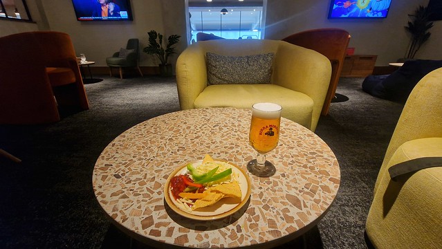 Well, this is sub-optimal, I’ve got behind once again with this blog. I shall have a posting burst today to catch up. Talk about surprising and delighting my two loyal blog readers and the three people who stumble on here every now and then. I once again wasn’t confident that I’d get into My Lounge at Luton Airport, but they said there was no queue and I was welcomed in with my Priority Pass card. I found a seat at the rear of the lounge, next to one of the plentiful power points, and collected my average beer and a heap of nachos. I would personally prefer proper seating at a table than these low chairs, but each to their own and I’m sure others will differ.