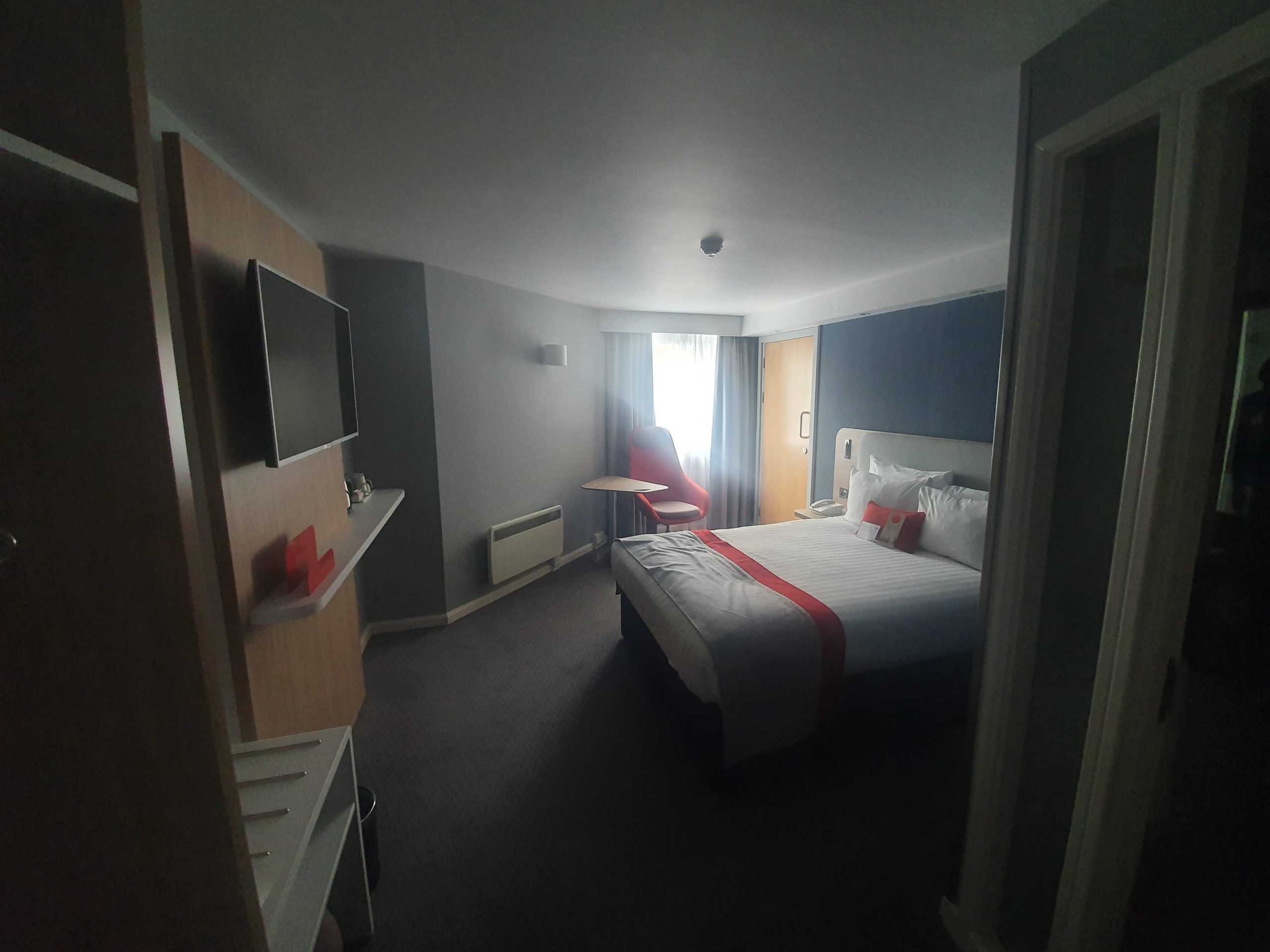 My first reaction to this room was to be pre-annoyed and to check the IHG web-site to see if there were other rooms in the hotel that were available, as I hate rooms with interconnecting doors. They’re a disaster, primarily as noise between the rooms is just excessive. However, the hotel was apparently full and so I thought that I’d be stuck with the room. The room’s main door was also left unlocked and on the latch, although no-one had rushed in to pinch the coffees or anything.