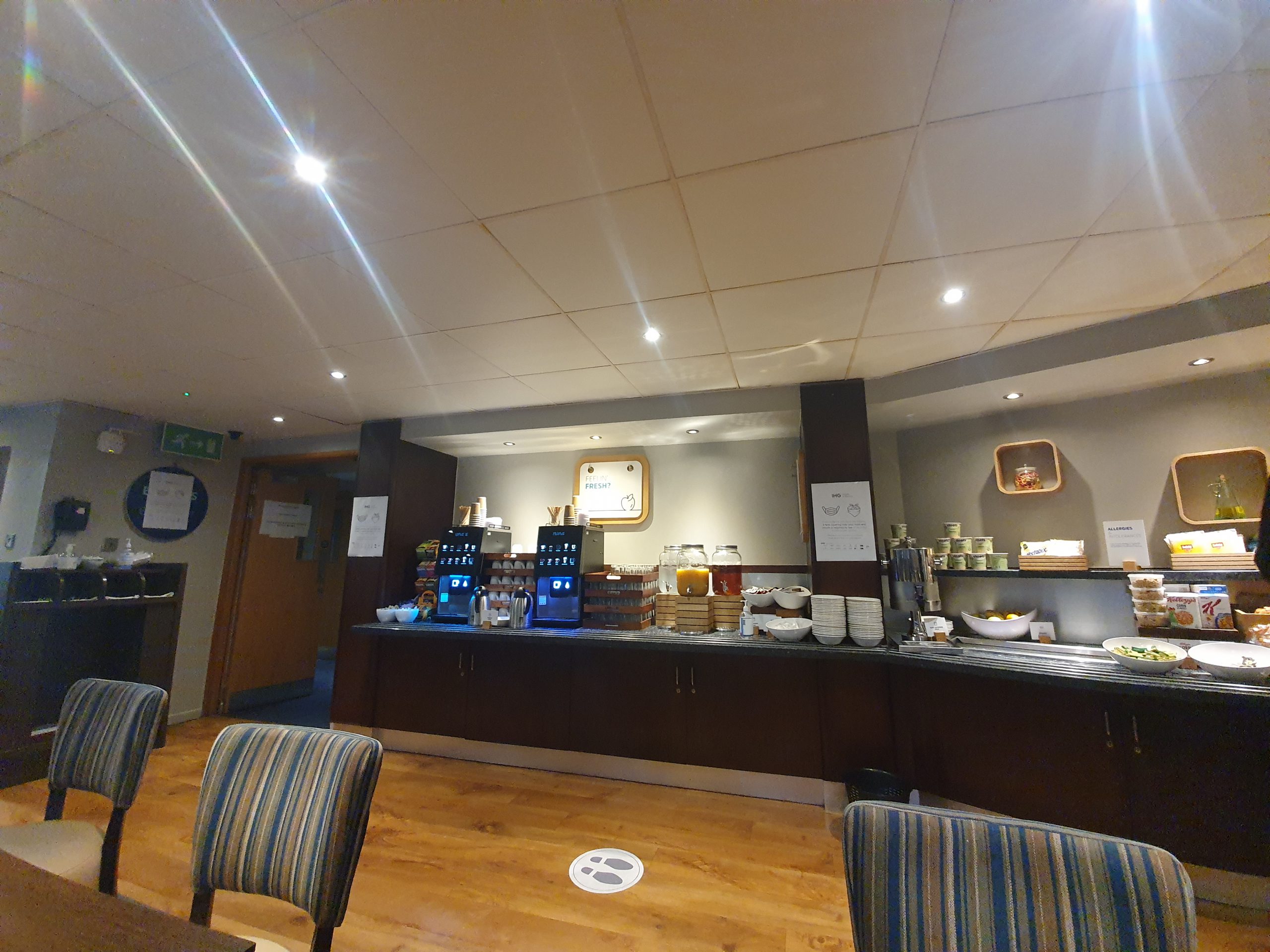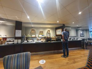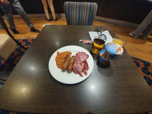 My first little selection and I picked out the most cooked bacon I could find, although they hadn’t frazzled it (which is how I like it, all crisped up) like the previous Holiday Inn Express. Anyway, all was well and the staff in the breakfast area were helpful and polite. I got there just before 07:00 on a bank holiday and it was already quite busy, although there were still plenty of seats.