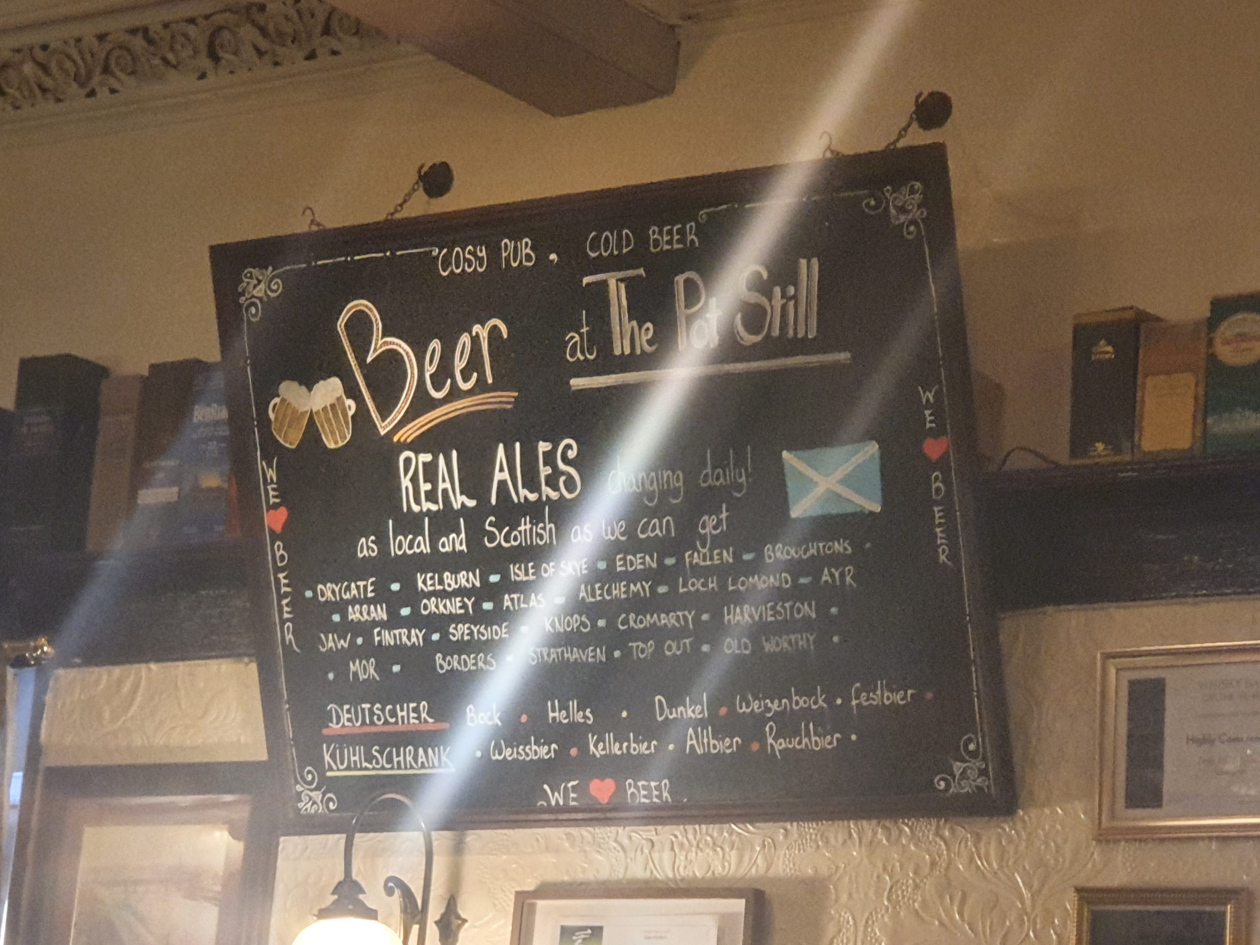 The pub has numerous pies, which looked rather lovely and if they had the chicken & leek one I’d have been sold on that, but they were offering haggis and similar options. I’m sure they’re rather delicious, but I decided it was a bit decadent for me in terms of the taste, although the prices were reasonable. Beer prices were also reasonable, there’s no attempt to take advantage of customers here. I messaged my friend Richard about this pub and I’m fairly sure that he would definitely have liked this place (I make no comment about Bells) and I can imagine that he would have had a decadent pie, a decadent whisky and then another decadent whisky.