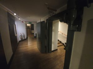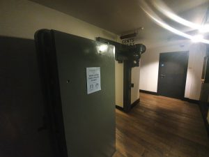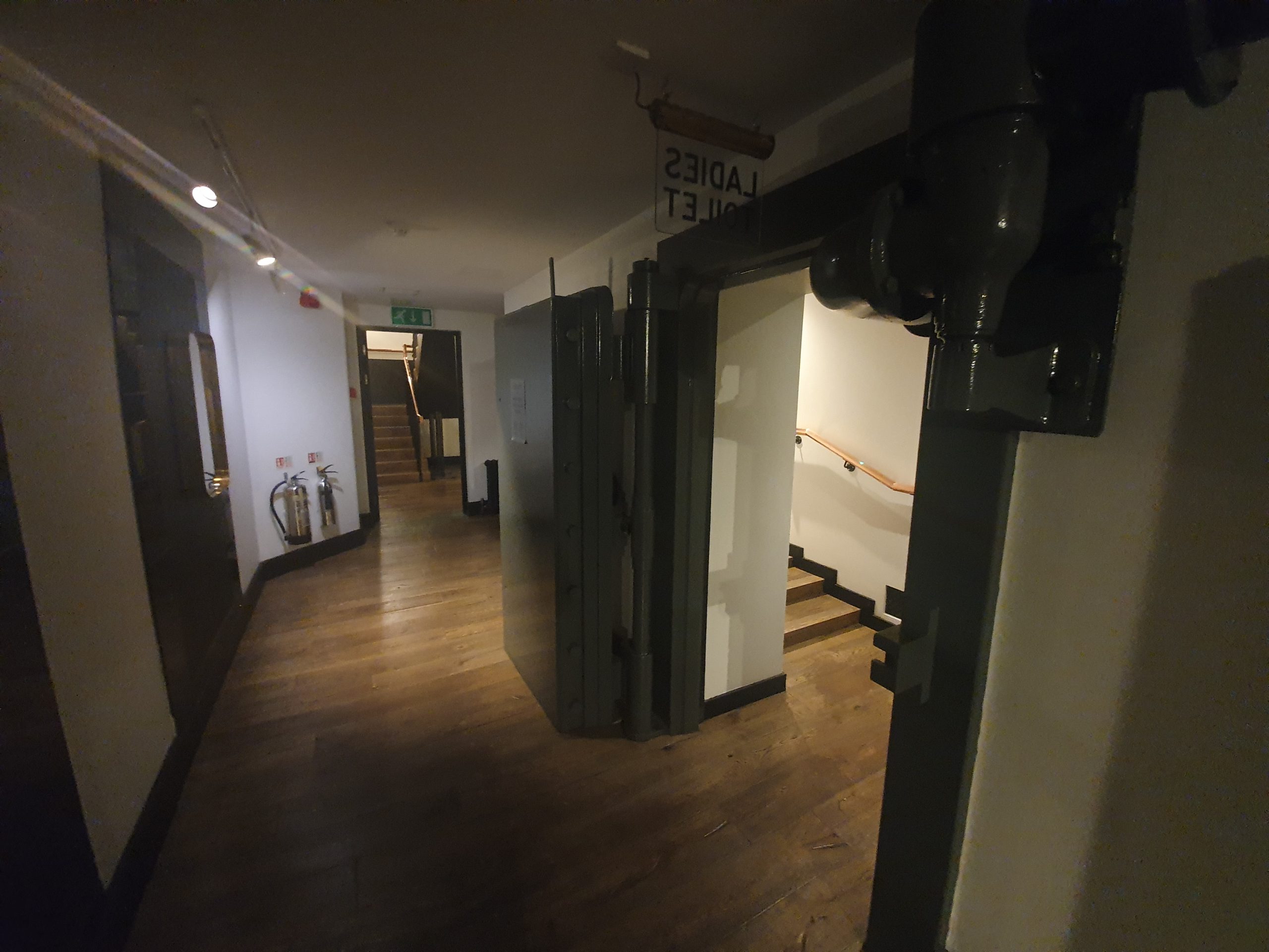 The cellar and the former bank vault doors are still in place. I thought at first it was nice that they’d kept them, but they realistically probably didn’t have a great deal of choice in the matter given how heavy and bulky they are. They’re a nice design feature as well.