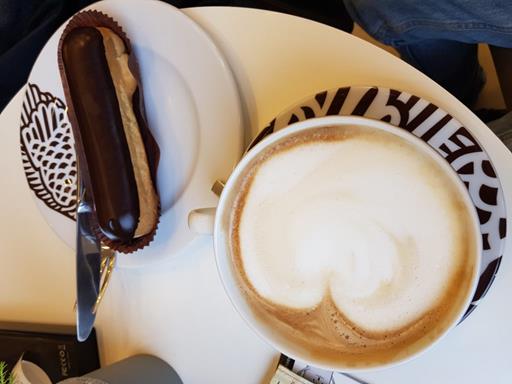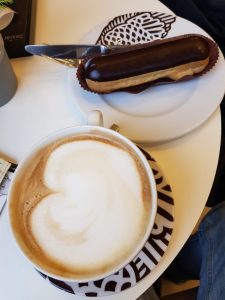 I really wanted another eclair after finishing the first, but I didn’t want the staff to think that I was greedy, and anyway, if I’d had a second I’d have only wanted a third. Coffee was above average as well with a rich flavour. Total cost of the coffee and eclair was around £2.20, but this coffee shop did have a premium feel to it.