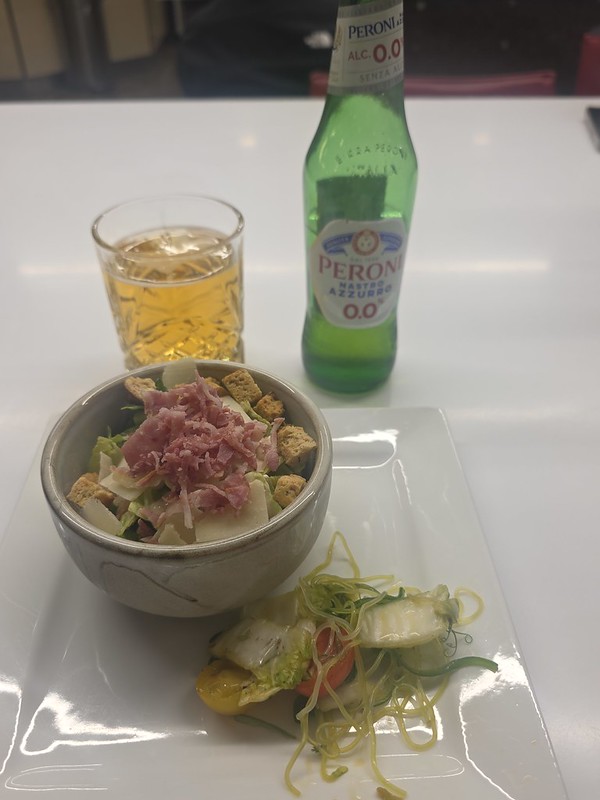 We didn’t go for the table service as we’d just had a three course meal, but I had a healthy salad with a generous amount of bacon bits from the self-service area. This tasted perfectly acceptable for a salad, with the Peroni 0% tasting thin and dull as ever.