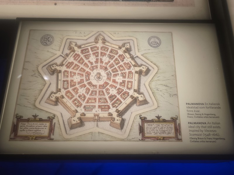 I discovered two things from this map in the museum. It’s the layout of Palmanova, which stands testament to the Renaissance ideal of the “perfect city”, although I’d never heard of it before. Designed in 1593 by architects like Vincenzo Scamozzi, the Italian city was built as a nine-pointed star with mathematical precision, intended to serve as both a military fortress against the Ottoman Empire and a harmonious utopian society where every road and square had a specific geometric purpose. It’s all still there, I’ve decided that I need to visit it.