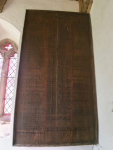 A board inside the porch with the names of past rectors and vicars.