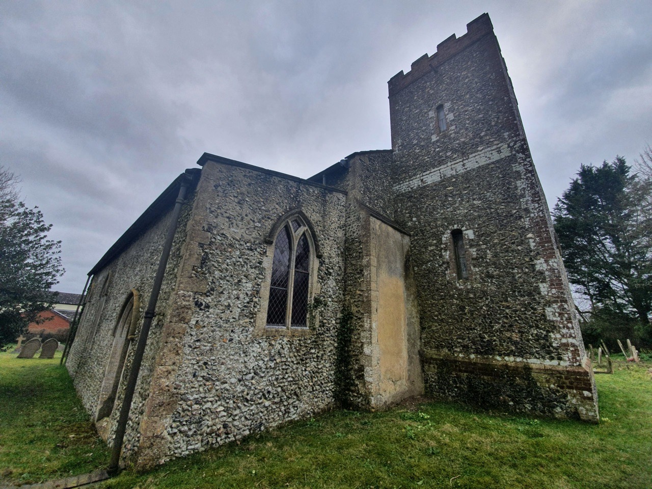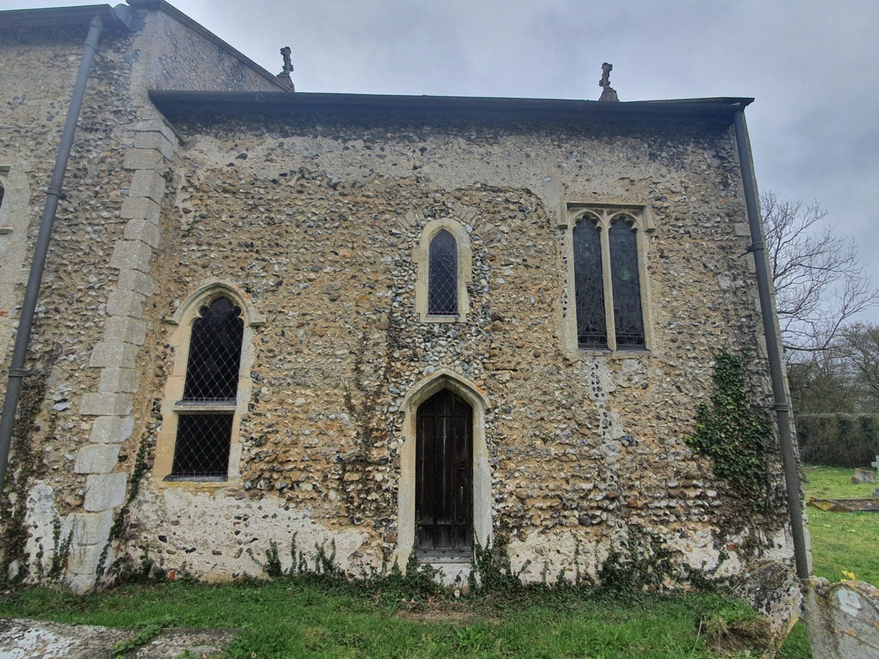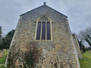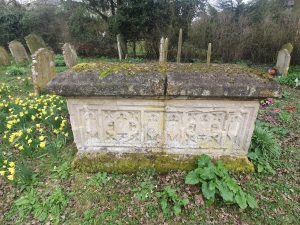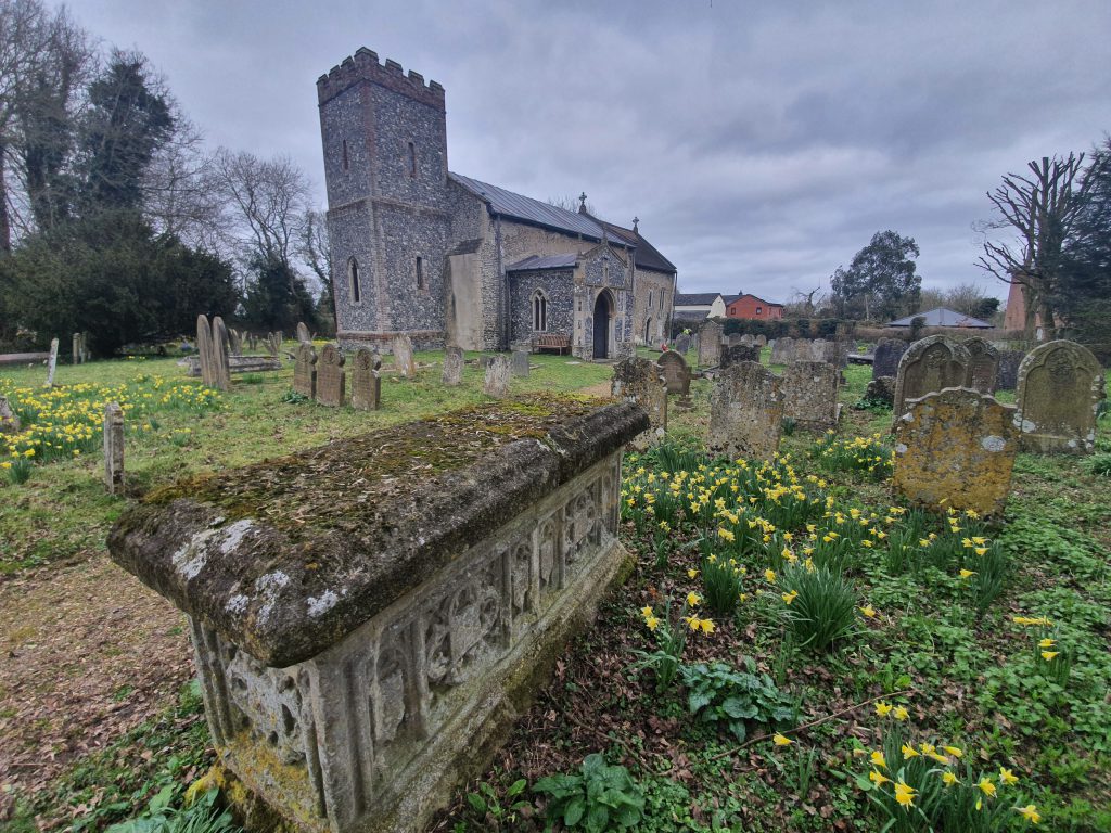 This is a repurposed tomb from the fourteenth century, likely moved from inside the church. Norfolk Heritage mention that this was investigated and taken apart in 1999, but there is no burial beneath the tomb as there was natural clay. All slightly puzzling. Such is my poor knowledge of historic religious structures that I merrily walked by this without noticing it, it was only the listed building record that explained that it was there.