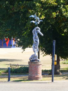 The forged chain sculpture at the entrance to St. George’s Park in Great Yarmouth, designed by blacksmith artists Nigel Barnett and Ros Newman. It was installed in 2008 and represent chains from harbour with seagulls flying above them. It’s a pleasant addition to the area around the park, although I’m not entirely sure that the town needed any reminder of seagulls, but there we go….