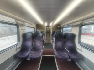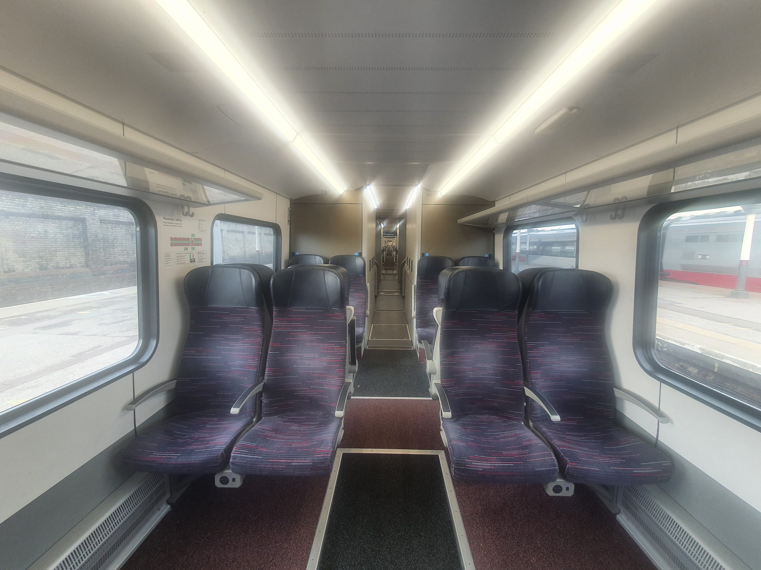 I have no idea why Greater Anglia keep using these Stansted Express trains, they were never designed for this route. They don’t have tables, they don’t have first class (not that that much matters to me) and they don’t have a buffet car (actually, that doesn’t much matter to me either). Other customers have asked Greater Anglia why they use these trains on social media, but it’s seemingly a mystery to customers and Greater Anglia alike. Two groups came walking by me on the train on a hunt for tables, but their search would have been forlorn. The conductor, who was friendly and helpful, made an announcement saying that a last minute train change was required, but this train continually goes up and down the Norwich to London mainline so it’s not a rare occurence.