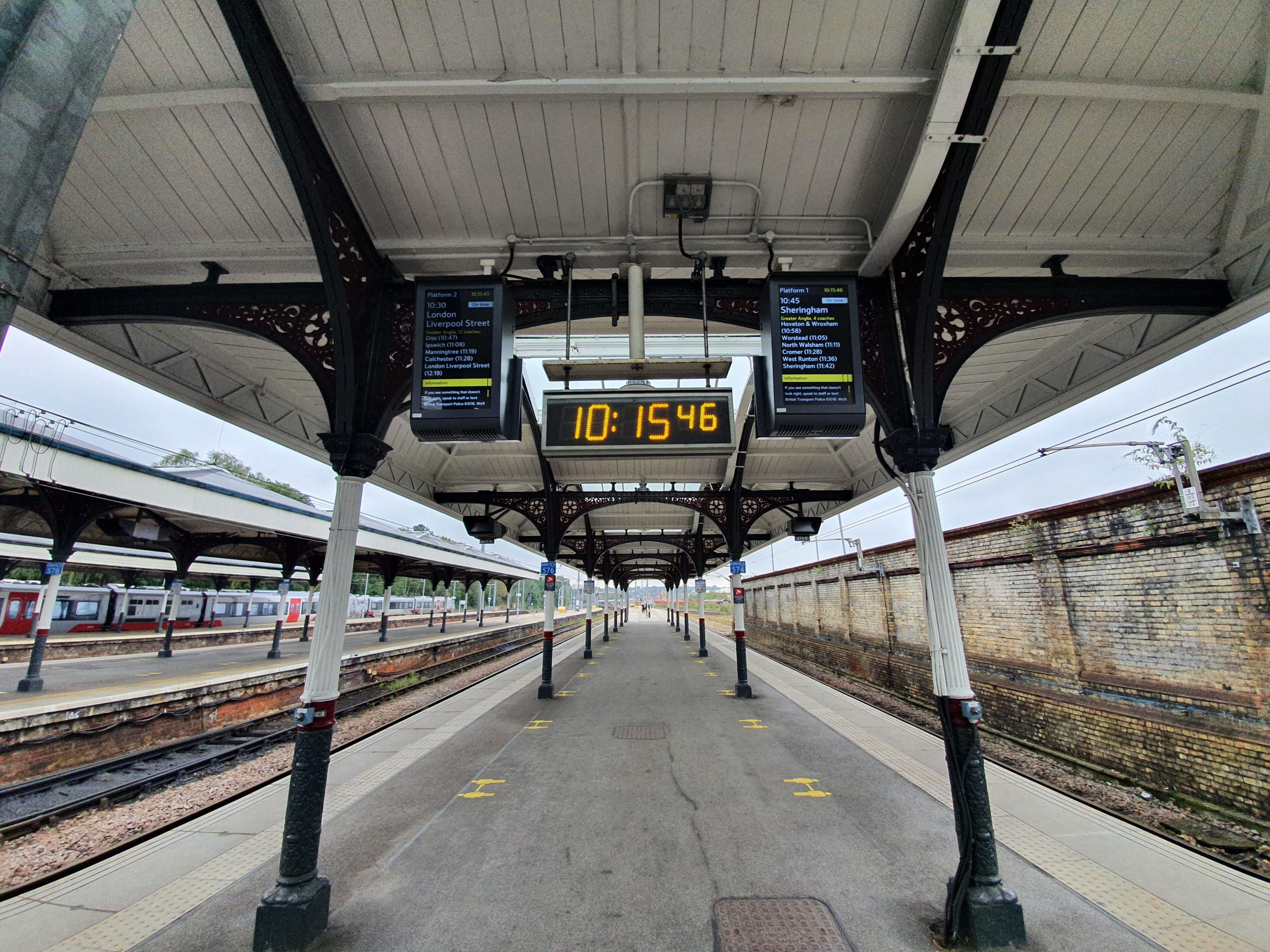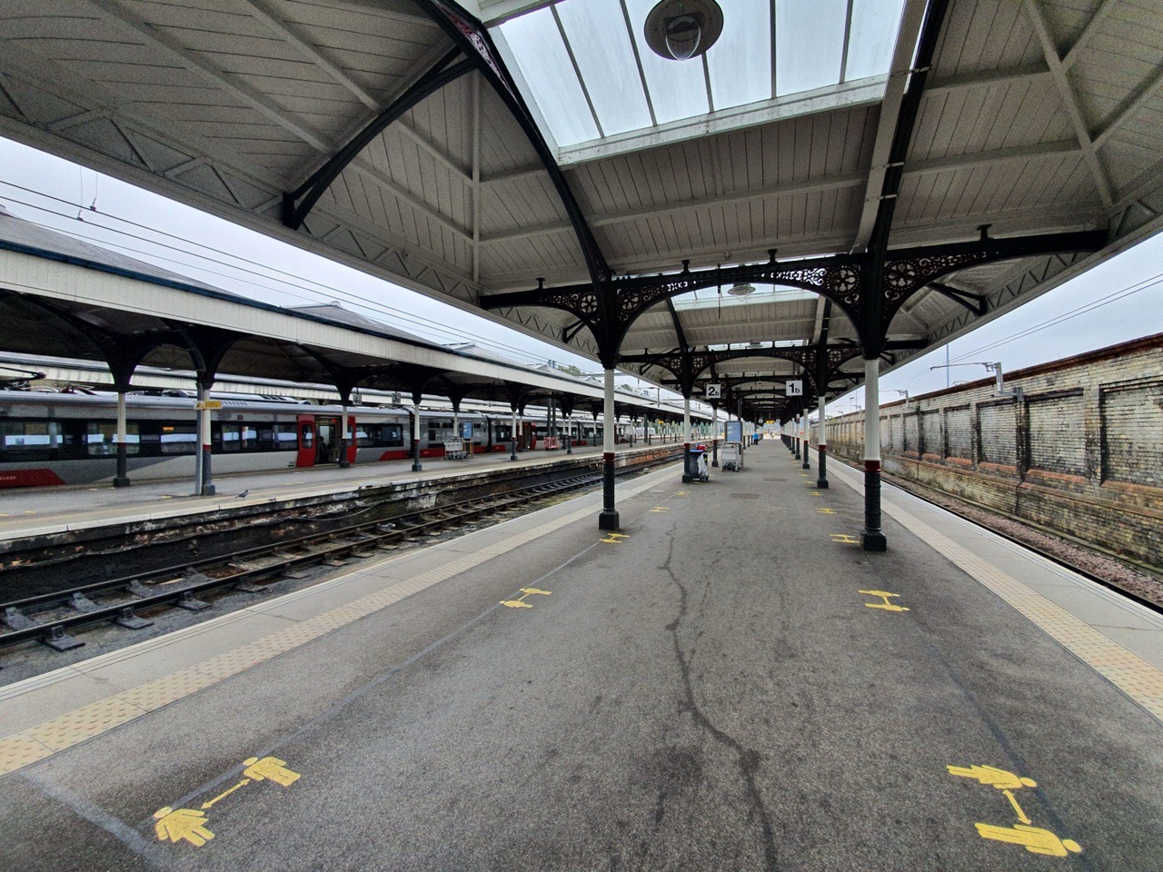 The train pulling up onto platform 2 at Norwich railway station. The journey was uneventful as everything worked well and the train arrived at Colchester railway station a few minutes early. It wasn’t a particularly busy service, a handful of customers in each carriage and every customer I noticed was wearing a mask.