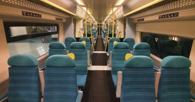 The outbound 10.30 train was the inbound 10.27 train, which meant that there was no time to properly clean it down, although a cleaner came through to collect rubbish. But, the carriages all looked clean and well maintained, but there’s not exactly a huge passenger load on them at the moment.