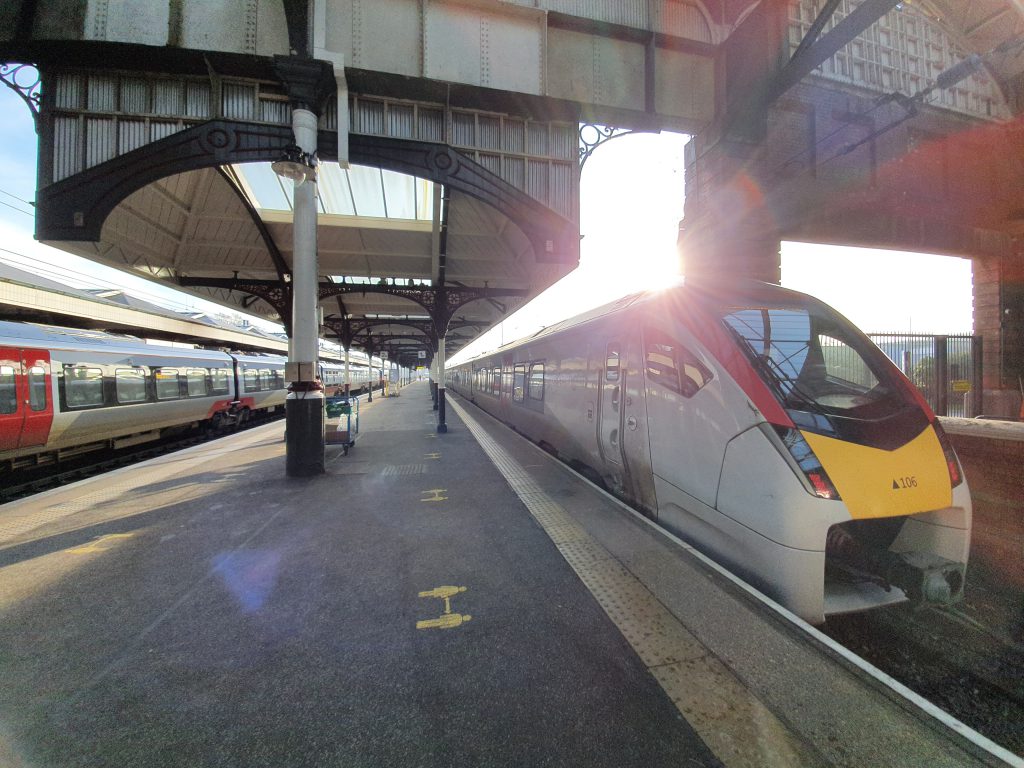 Norwich station now that travel has been opened up again, the 11:00 service to London. The railway station wasn’t particularly busy, but there were plenty of staff available. This was a £10 fare booked directly with Greater Anglia, but I only seemed to be able to get a ticket downloaded to my phone rather than a paper ticket.
