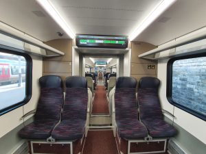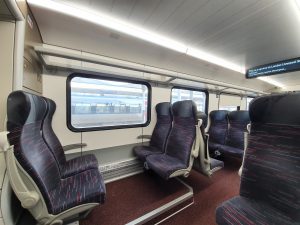 And then I realised this is one of Greater Anglia’s Stansted Express trains, dumped onto the mainline between Norwich and London. I don’t like these trains as there are no tables, so people have to prop laptops and food on their laps and it just leads to drink spillages and people putting their feet on the seats. Unbelievably, or at least to me, Greater Anglia say the reason is “it makes the carriages feel very open and spacious”. I’m really not convinced that customers prefer it like this, but, even if Stansted customers hate tables then there’s always the risk that the trains get used elsewhere. Like on this journey.