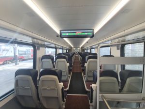 This is one of the Greater Anglia fleet that has no tables, as passenger surveys have apparently told them that customers don’t like them. I make no comment….. Anyway, the train was clean, shiny and nearly completely empty. Everything on the train was working though, including the power and even all the toilets were functional. How lovely.