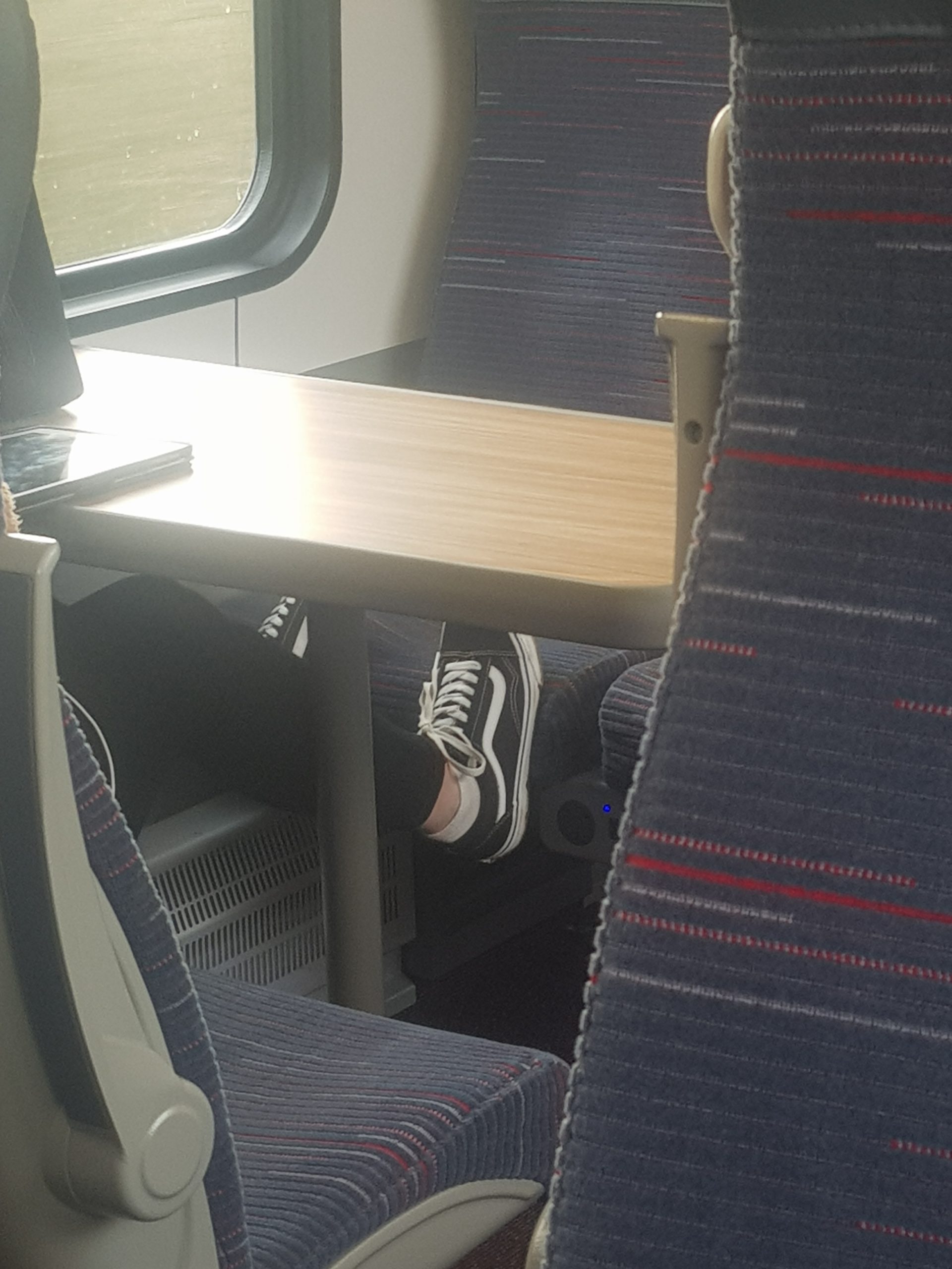 This slightly irritated me, some idiot putting their feet on what are nearly new seats. Fortunately, it also irritated the guard who politely, but firmly, told the passenger to stop this behaviour when he saw her.