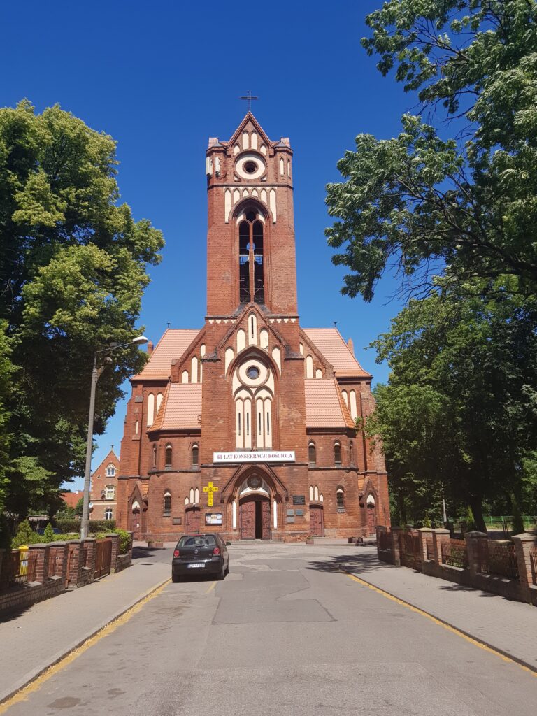 This looked rather Prussian and it was constructed in the last few years of the nineteenth century. It remained a Lutheran church until after the end of the Second World War, when it became a catholic church.