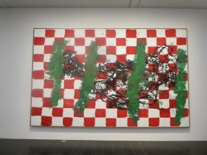 However, the Kunsthalle is prepared for this, and has made an huge effort to add narrative to artworks for those who want to get some understanding of them. So, Baselitz started in 1991 to paint large canvasses and the painting name is simply the order in which he created his works. I like that sense of order. The gallery seem to struggle from here, they describe the red and white fields on which two figures (the black lines) are painted. I’m not convinced, although apparently he painted them with his fingers. Anyway, from here the four green lines are dripped from a higher platform, with the paint transferred to them by Baselitz getting into a tub of green paint with his shoes on.