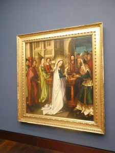 The theme of this painting is when Jesus Christ was taken to the Temple of Jerusalem for him to be inducted into Judaism. It was painted by Hans Holbein, the older one and not the younger one of Henry VIII fame, in 1500 or 1501 and is painted on a pine panel.