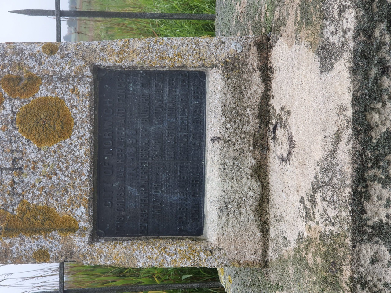 Once marking the end of Breydon Water, there have been numerous panels and inscriptions added to the cross, this one being from the 1899 repair. The base of the cross is likely medieval and probably dates to the fourteenth century, although repairs have been made in 1820, 1834, 1899 and 1971. There was a wooden cross added on top of the base in 1543, and likely before, with a stone version added in 1676 and that’s the one that is there today.