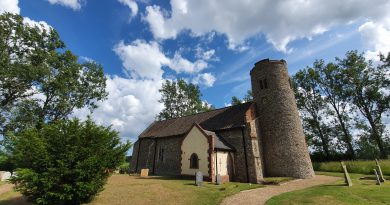 It’s not that common to see Commonwealth War Graves at remote Norfolk churches, but All Saints at Hemblington have two war dead, both marked on one grave. They are the graves of Squadron Leader George Ernest Weston, who died at the age of 23, and Flight Sergeant Godfrey Randal Weston, who died at the age of 22.