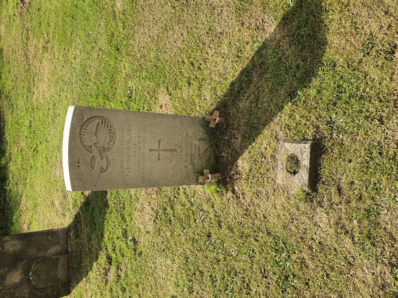 The men were brothers, sons of George and Frances Lesley Weston, of Nelson City, New Zealand and they were buried together, but died in separate air crashes, with George dying on 1 October 1942 and Godfrey dying on 20 April 1944. There’s a photo of Godfrey at https://www.aucklandmuseum.com/war-memorial/online-cenotaph/record/C22286.