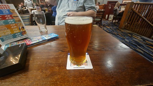 I went for a pint of the Devon Dumpling from Bays Brewery of Paignton, a well kept golden ale which was hoppy although didn’t quite have the depth of flavour that I would have expected from a 5.1% beer. Jonathan was already on double whiskies, a drink that is affordable in JD Wetherspoon at least.