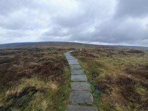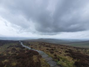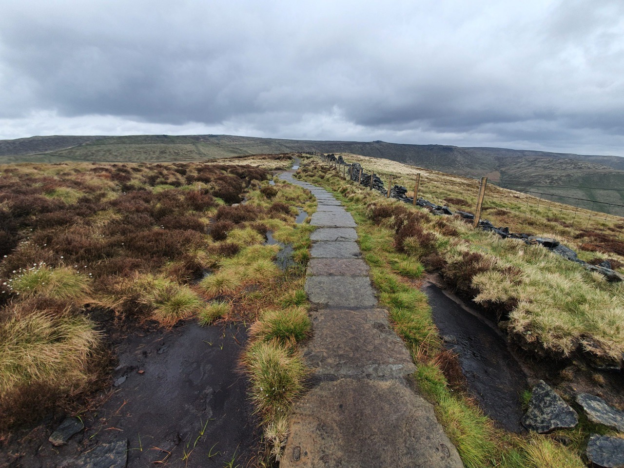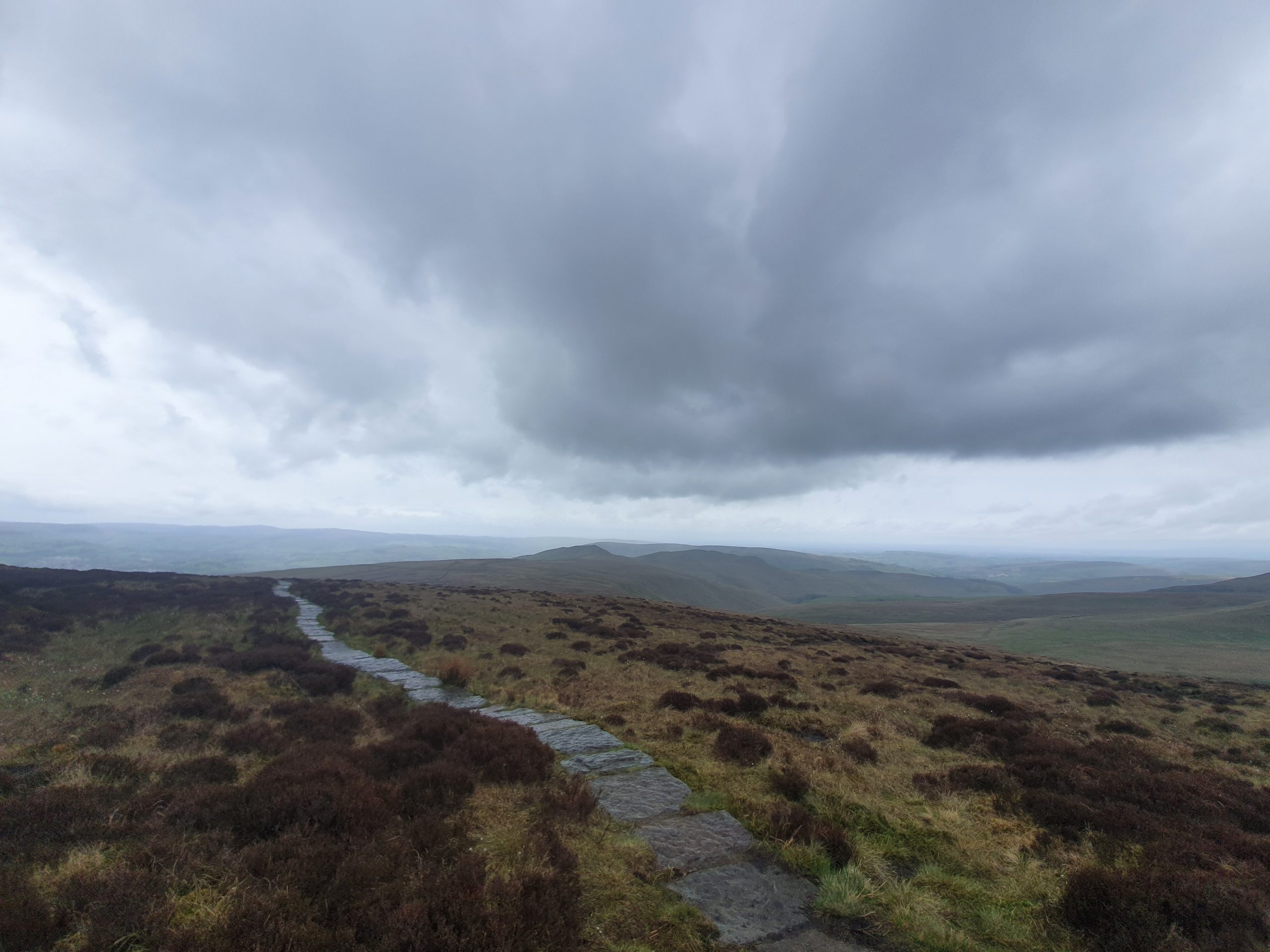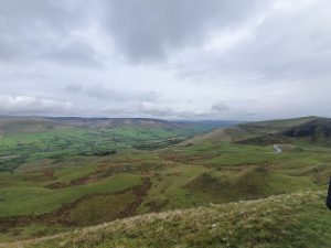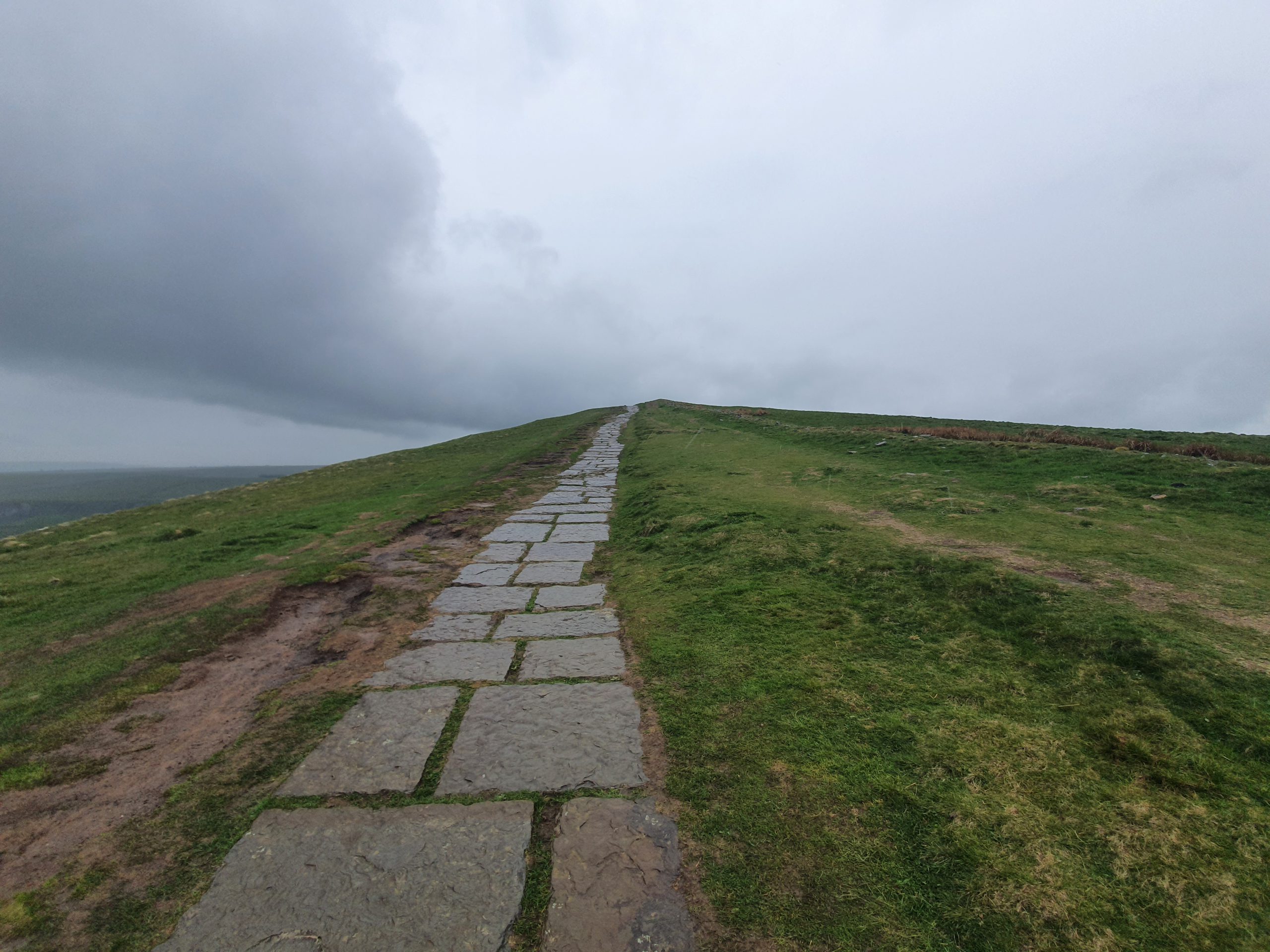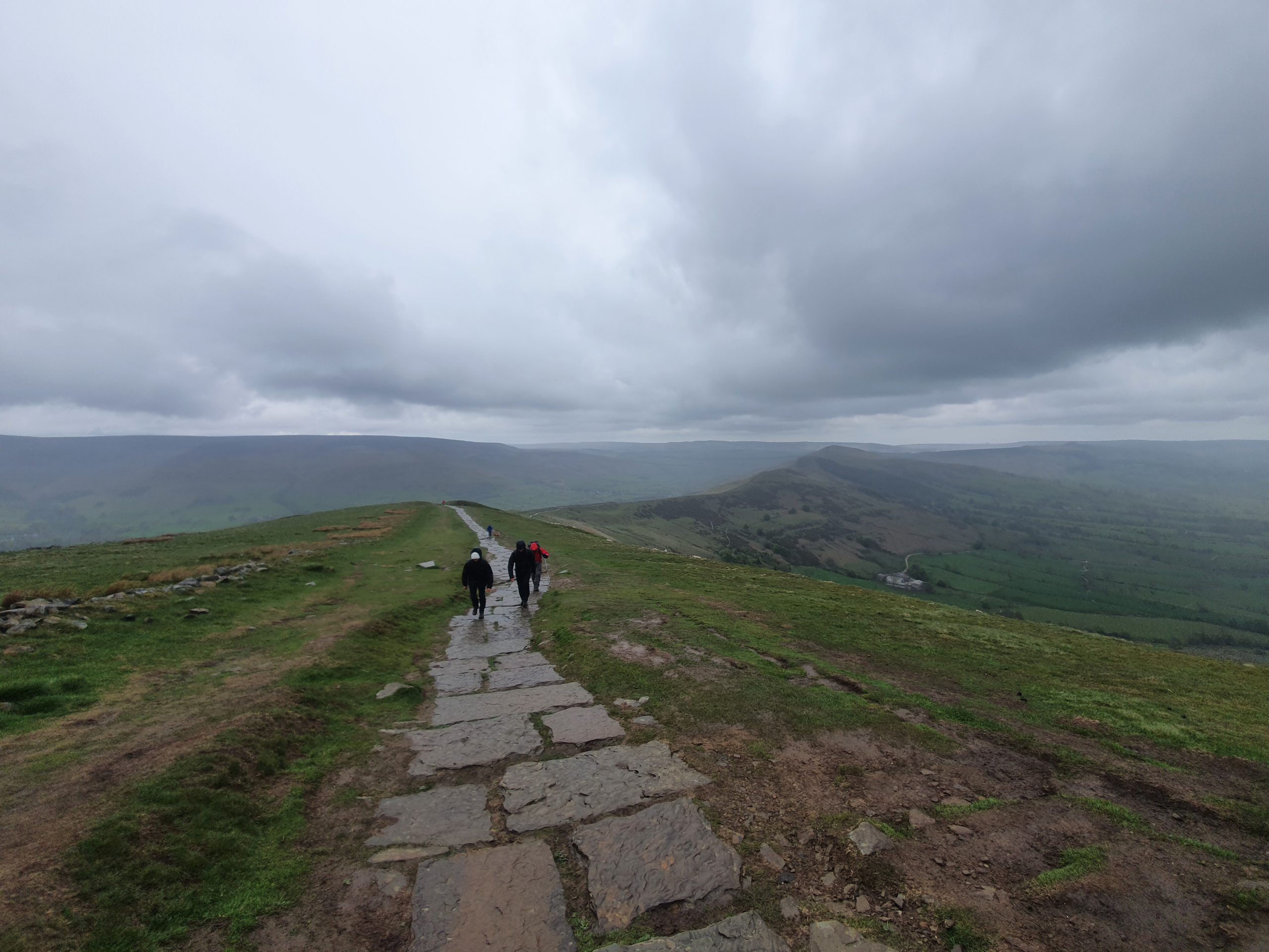 We reached the summit of the mountain (technically a hill) that we were climbing and I was delighted to see that they’d paved the section to Mam Tor. I approved of this. The rain picked up quite heavily at this point, a situation that wasn’t entirely ideal.