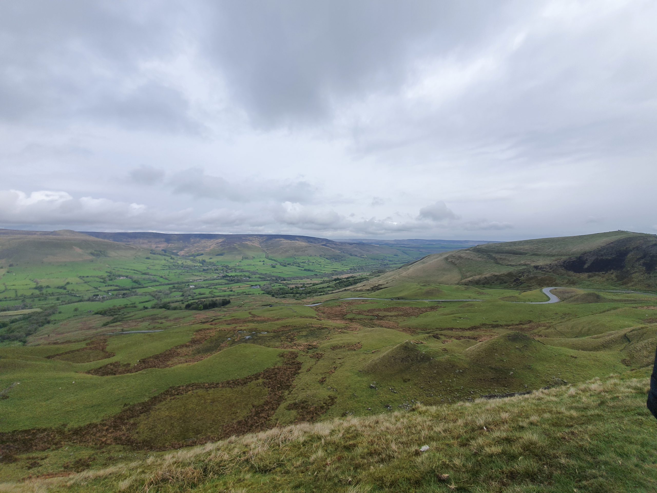 And the top of Mam Tor, which Wikipedia tells me means “mother hill”. It also tells me that the Mam Tor is alternatively known as Shivering Mountain, which I prefer since it has the word mountain in it and so makes the walk sound more difficult. Incidentally, I’ve only just discovered there’s an abandoned road (the A625) here which dates from the 1800s and was repaired until 1979 when a replacement was built. I want to see this next time I’m visiting the area…..