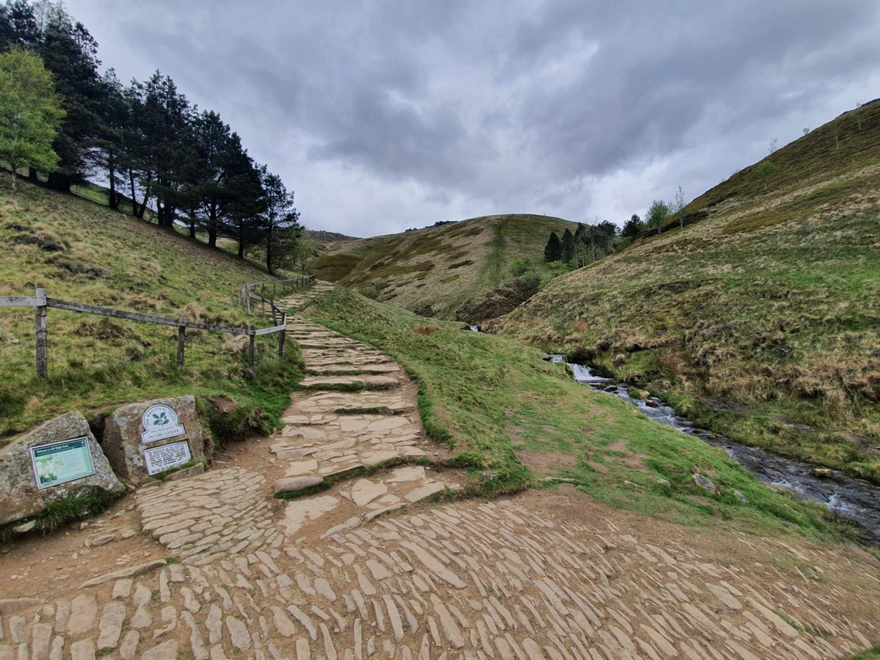 These flagstones fascinated me and I know that means that I really should get out more. But they are reused from cotton mills and many of them have holes in them from where things were attached to them. It really does feel like walking on history and the current property owners are pleased that they’re being reused, as previously they were a nightmare to get rid of. Apparently the stones are placed with care by hand, although goodness knows those big heavy lumps are moved into position. They have also been surfaced to avoid being slippery and I can confirm that I didn’t slip or slide once during the day.
