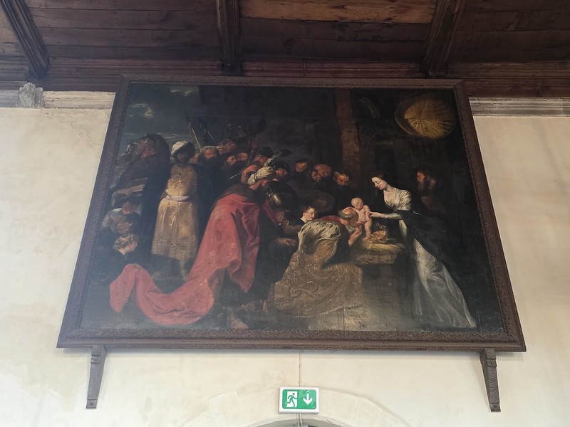 Located above the north door of St. Mary’s Church in Hitchin is this large painting of the Adoration of the Magi. It occurred to me (and others will inevitably disagree) that it seemed just a little out of place, as if they had this painting and they weren’t entirely sure where to put it. And it has been moved around the church a little, although it moved to its current position in the early nineteenth century and I don’t imagine it’ll be on any travels in the near future. It was donated to the church by John Radcliffe (1738–1783) in 1774 and his family lived in Hitchin Priory so it was unlikely that a gift from the local gentry would have been declined. The painting itself is a copy of an artwork that came from Peter Paul Rubens’s workshop and it’s fortunate that it came after the Puritans had a little rummage about the church as otherwise this would have likely been destroyed. There’s some authenticity to having this religious imagery in a church, although it’s a little dark and hard to see when it’s high up on a church wall. Anyway, what really intrigued me is that no-one has ever taken it down, it would have only taken one vicar who didn’t like it and it would have gone, with the Victorians being particularly good at this wholesale removal of items.