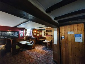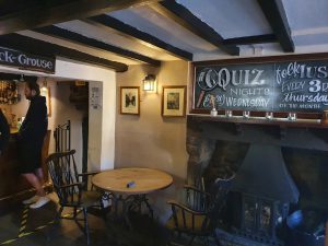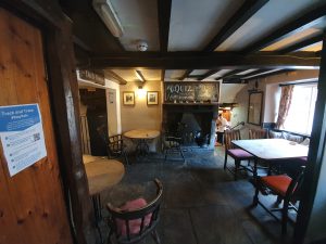The same room, with a downstairs area visible down some steps on the right-hand side. There were people in there so I didn’t disturb them by taking a photo, but this was the second cottage that was once used to house animals downstairs whilst the owners lived in the upper part. I like that the pub has made an effort to explain its history on their web-site, noting: