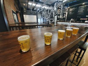 I must admit to being slightly disappointed at the entire lack of any dark beers, even as guests, with not even their Commons Grounds porter visible. I went for five different beers from Magic Rock, all served as thirds. The bar service was slightly clumsy given that the beers are all the same colour, I would have really preferred a better set-up than this, even if they had just written them down on a bit of paper. The barman told me the drinks, but he got the order muddled up, although I think I was able to correct it (that’s the handy thing about a Gose, it’s not hard to recognise). There was also a moderately surprisingly lack of engagement given that this is the brewery’s taproom, but the service remained friendly enough.