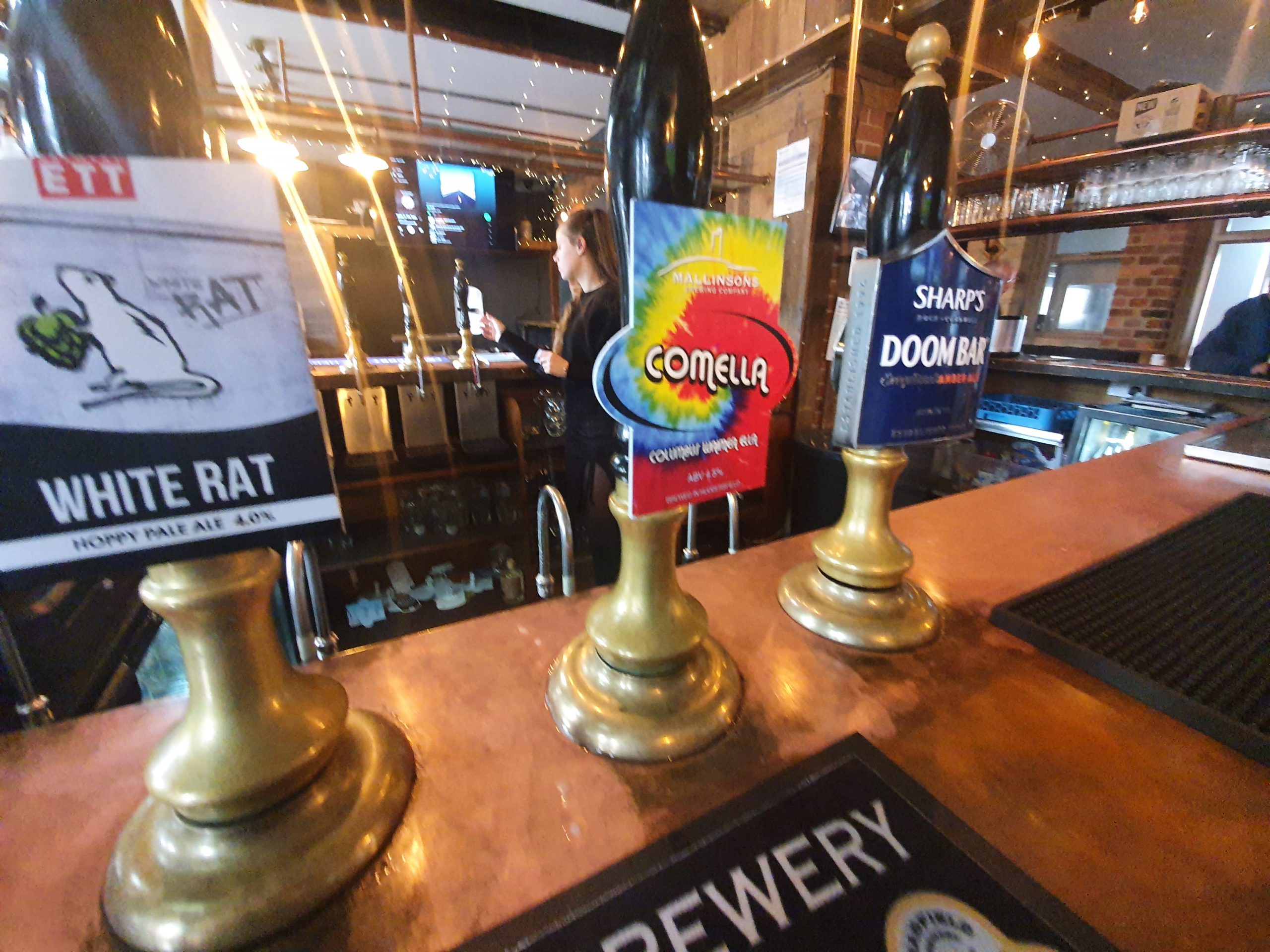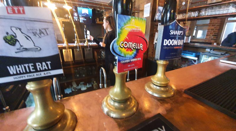 I’m not normally tempted by the artwork on a pump clip, but I liked the brightness of the Comella pale ale decoration from the local brewery Mallinsons, which was a perfectly reasonable beer. Nothing exceptional maybe, but something a little different. The serving arrangement here is a central bar which serves from both sides, although I think that they had different real ales on each side (unless I got muddled up).