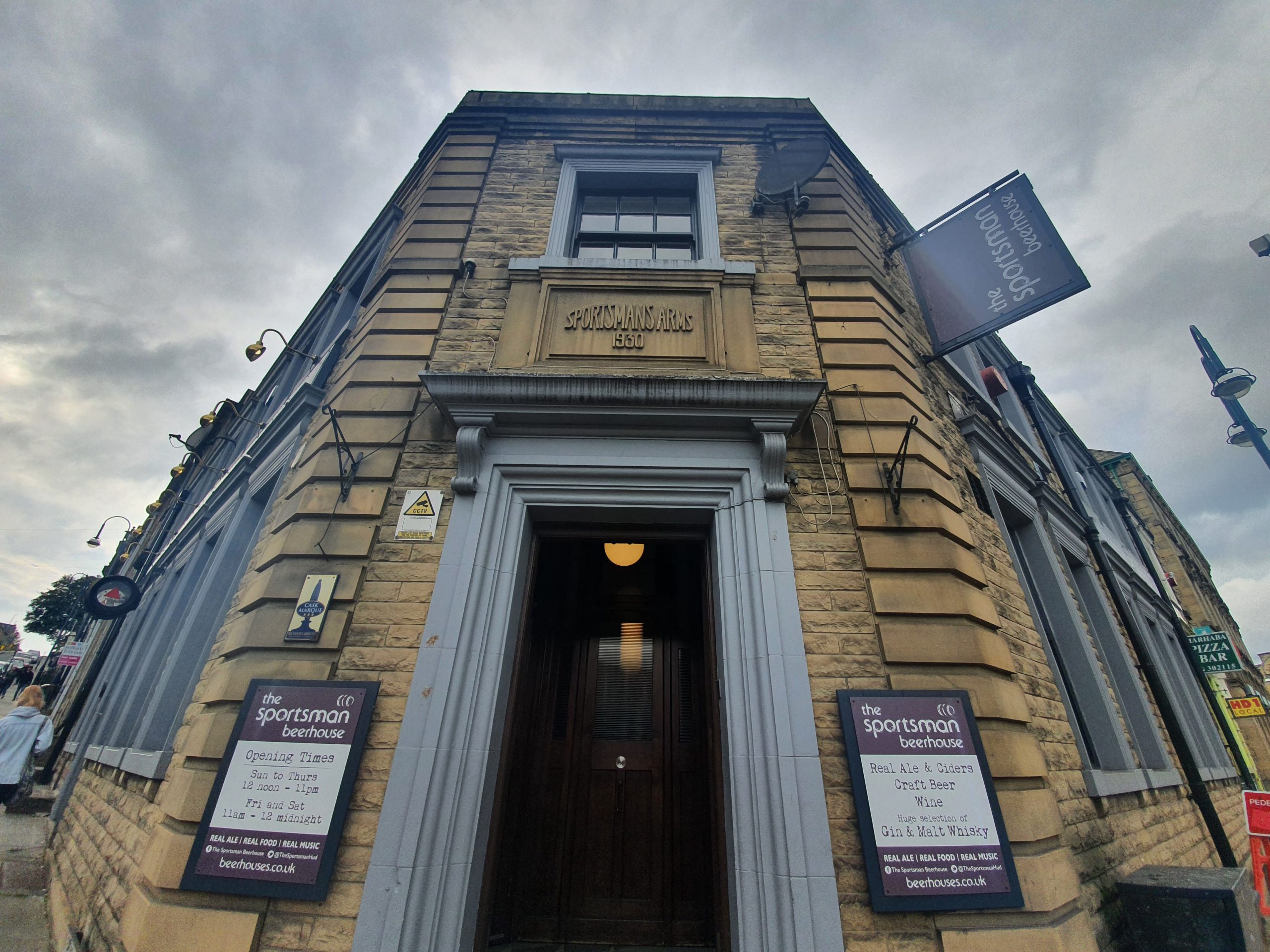 Going back a few weeks (my backlog shows no signs of going away, but I shall persist….) to when Tony and I had a little expedition around the pubs of Huddersfield. This is the Sportsman, a Good Beer Guide listed pub which is noted for its historic pub interior and its selection of beer.