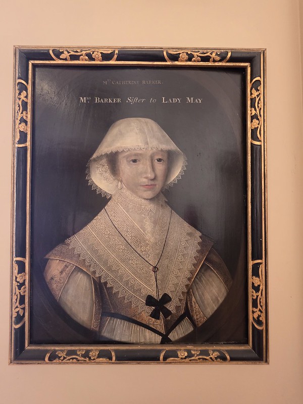 This painting is located within the collections of Ickworth House and the sitter is Catherine Poley, Mrs Edward Barker (1600-1665). It was painted at some point between 1630 and 1669 and the artwork was acquired by the National Trust in 1956 having been accepted by HM Treasury in lieu of tax. On the back of the painting it apparently states “My Ladie Harvis picter when I am dead” which I assume to mean “My Lady Harvis’s picture when I am dead”, or please keep this portrait after she died. The front states “Mrs Barker, Sister to Lady May” and I assume that’s Isabella May (1625-1686) who married Sir Thomas Hervey and it’s the Hervey family who owned Ickworth.