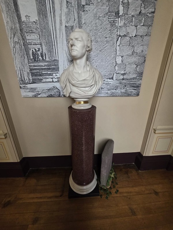 This sculpture of William Pitt the Younger is located in the West Corridor at Ickworth House, standing next to the sculpture of the 2nd Earl of Liverpool. And, for anyone who remembers (or cares) from that blog post, this sculpture is on a red porphyry scagliola column with a white marble base. Very technical of me…. I don’t much need to write about William Pitt the Younger as he’s hardly an anonymous person.