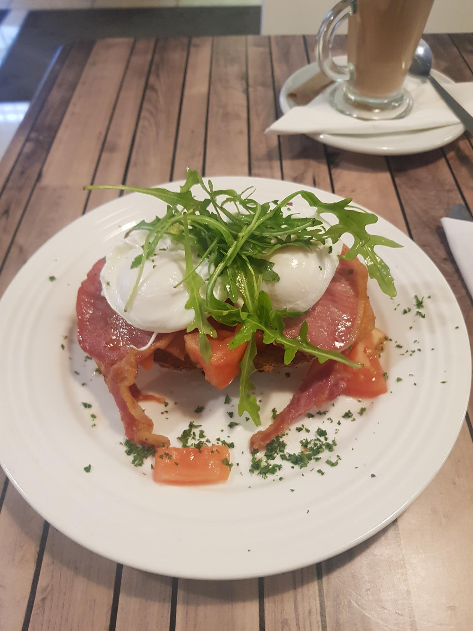 And the breakfast, which was bacon, tomatoes and poached eggs on top of a sourdough bread base, with rocket placed on top. This was excellent, the bacon was cooked properly as there’s nothing more irritating (in breakfast terms only, as there are many more irritating situations in the world at the moment) than bacon which has just been wafted vaguely over a heat source. The bacon also wasn’t fatty, which saved me spending ages trying to cut the fat off, and the eggs were perfect so they were runny when cut into. The rocket added a peppery flavour and the tomatoes were plentiful and had some taste to them, not the watery taste variety that is far too common. The sourdough bread also had a pleasant taste and there was a quality across the ingredients, with a clean and simple presentation.