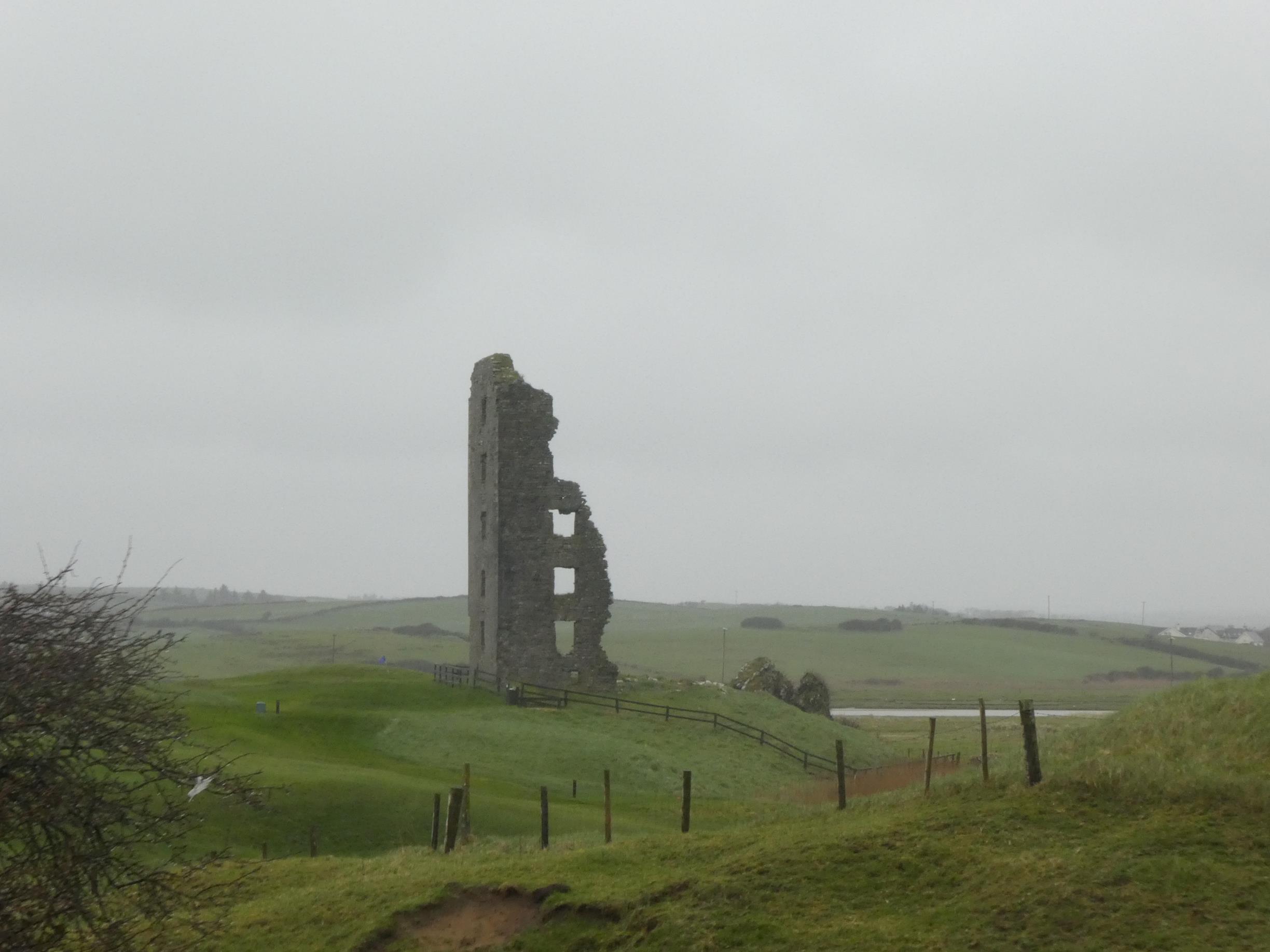 Anyway, the coach went to Lahinch which is probably a lovely place, but we didn’t really see it. Well, we saw the golf course and a castle thing which had half fallen down. The weather was dreadful and although we hoped it would stop raining, it didn’t all day. I was very brave about the whole thing.