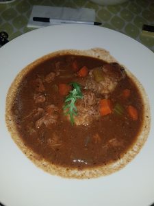 The beef stew and mashed potato was excellent, lots of beef which was tender and full of flavour.
