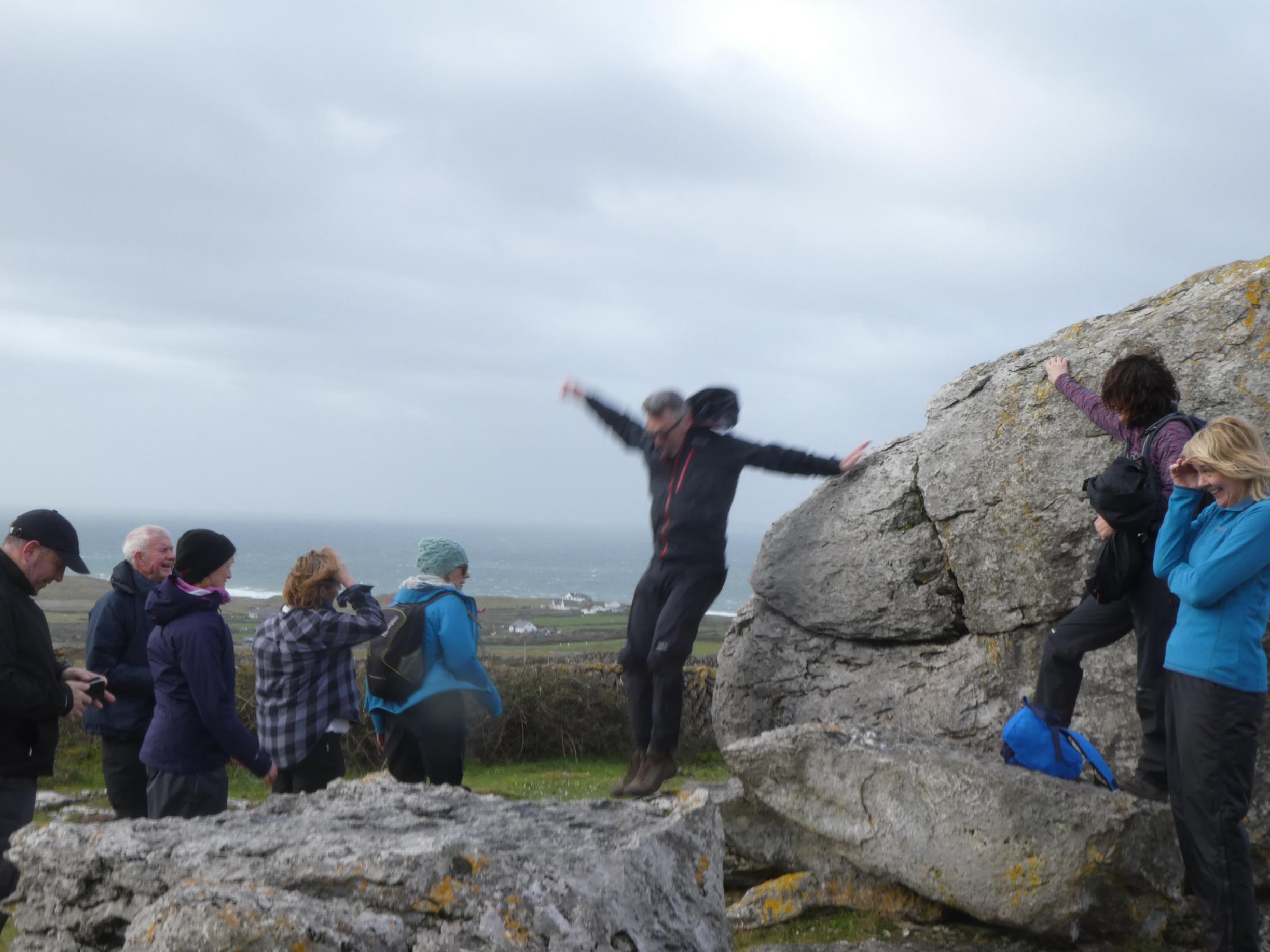Steve B jumping back down from the rock after the photograph had been taken. I wasn’t stupid enough to climb up the bloody thing in the first place, it seemed far too raucous for my liking.
