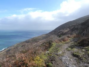 The next part of the walk remained coastal, until we cut through between two hills. Now, there was a lot of complaining at this point from some members of the group, who decided that they thought the hill was more hilly than I’d pointed out. Frankly, I ignored their complaints, but I said that I was responsive to feedback. Although I obviously wasn’t.
