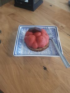 And a red berry cake with chocolate wedged into it, a combination which seems to work well. Nicely presented, tasted fresh and the entire cake and coffee combination came to around £3.