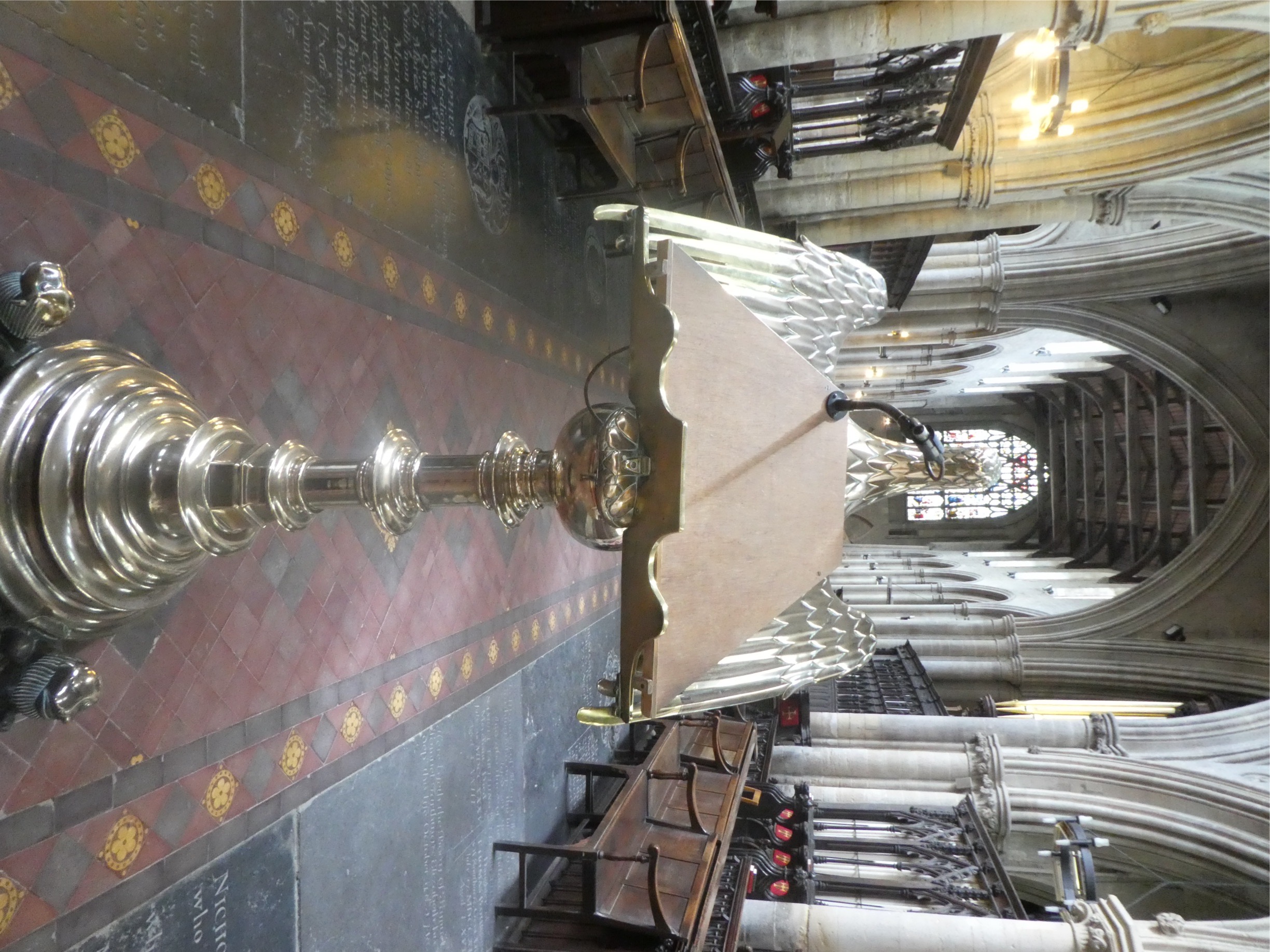 This eagle lectern is made from brass, dates to the fifteenth century and it was once covered in rich jewels. The feathers are apparently slightly later replacements, but this bird is still something of a survivor given its age.