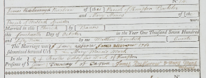 James was married to Mary Means at the church on 14 October 1759 and the ceremony was witnessed by Charles Coleby and James Downing. It’s clear the clerk was confused by the name as well, trying to originally spell it as Riesborough. James died at the age of 48 on 7 June 1778 and I note that someone with the same surname was buried at the church in 2018, so the name has continued on.