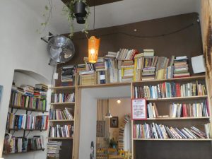 So many books…. There are also inspirational messages of various sorts which have been placed on walls around the cafe.