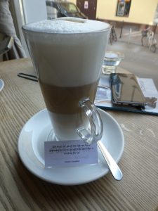 The latte and cake, all of a perfectly good quality. The service in the cafe was polite, although at times it seemed slightly confused, although I normally add to the chaos on such occasions. Cleanliness wasn’t great, the cafe’s toilet probably needed cleaning a matter of hours before my visit rather than minutes, and the staff didn’t seem particularly pro-active in cleaning away empty plates on tables.